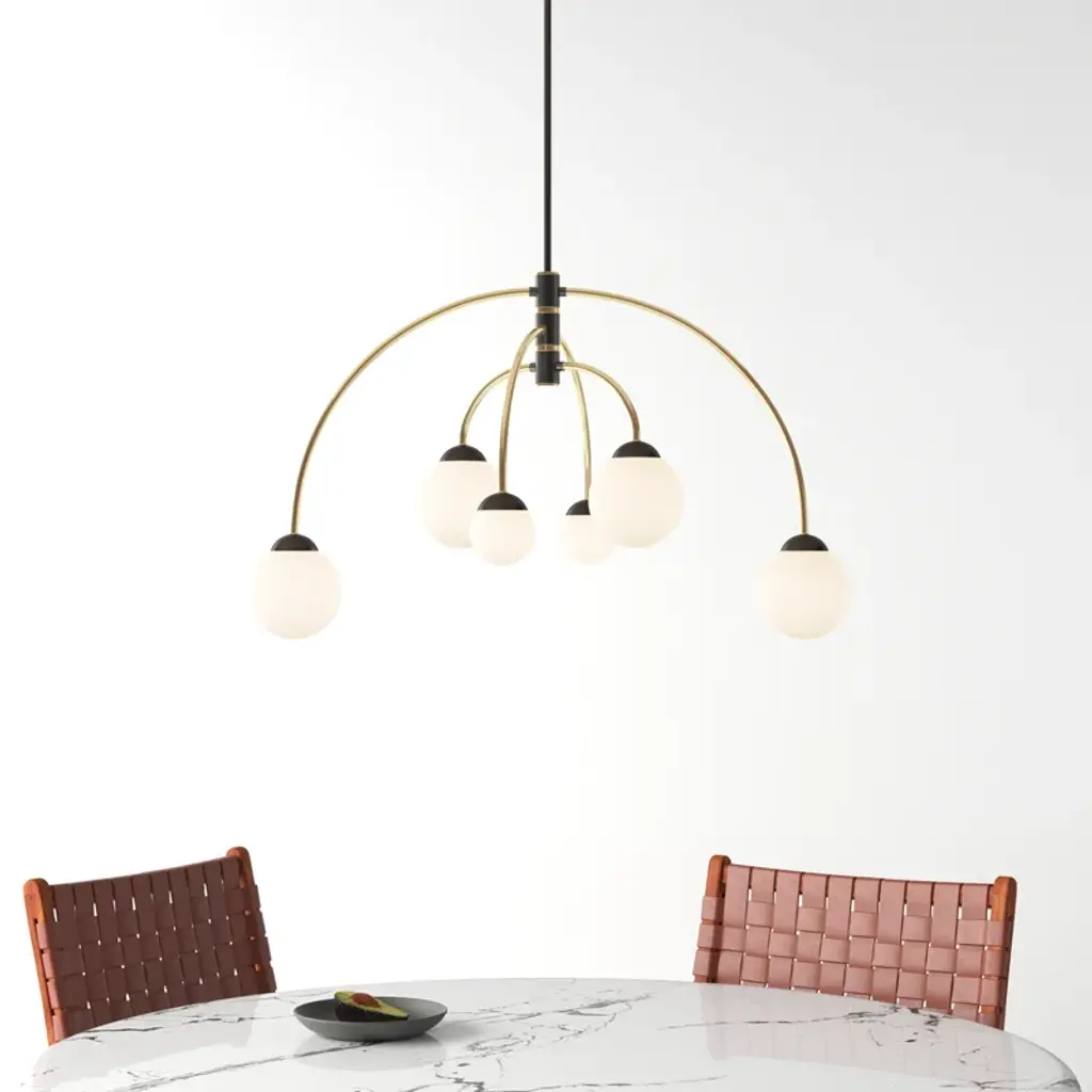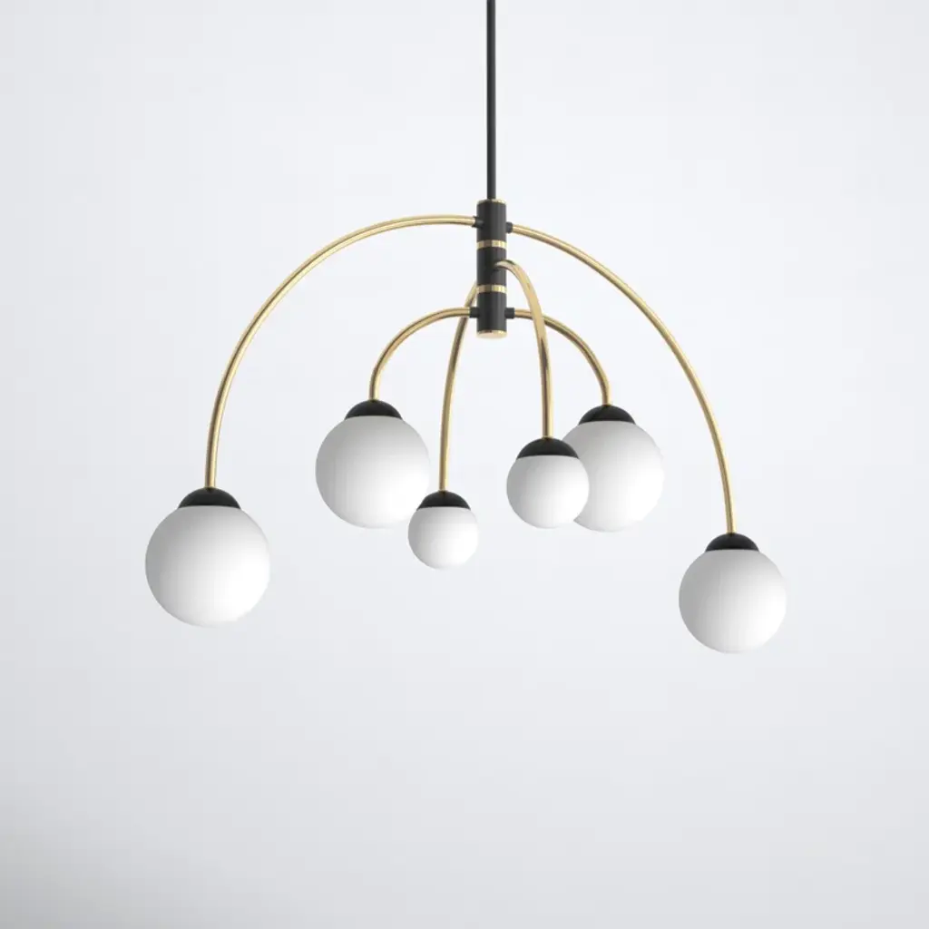 Make a grand statement. This unique chandelier features a classic design with a modern twist. Made with a metal frame and frosted glass shades, it showcases six lights that provide ambient illumination. With adjustable length and dimmable options, it's perfect for any residential space. Let this chandelier be the centerpiece that elevates your decor.