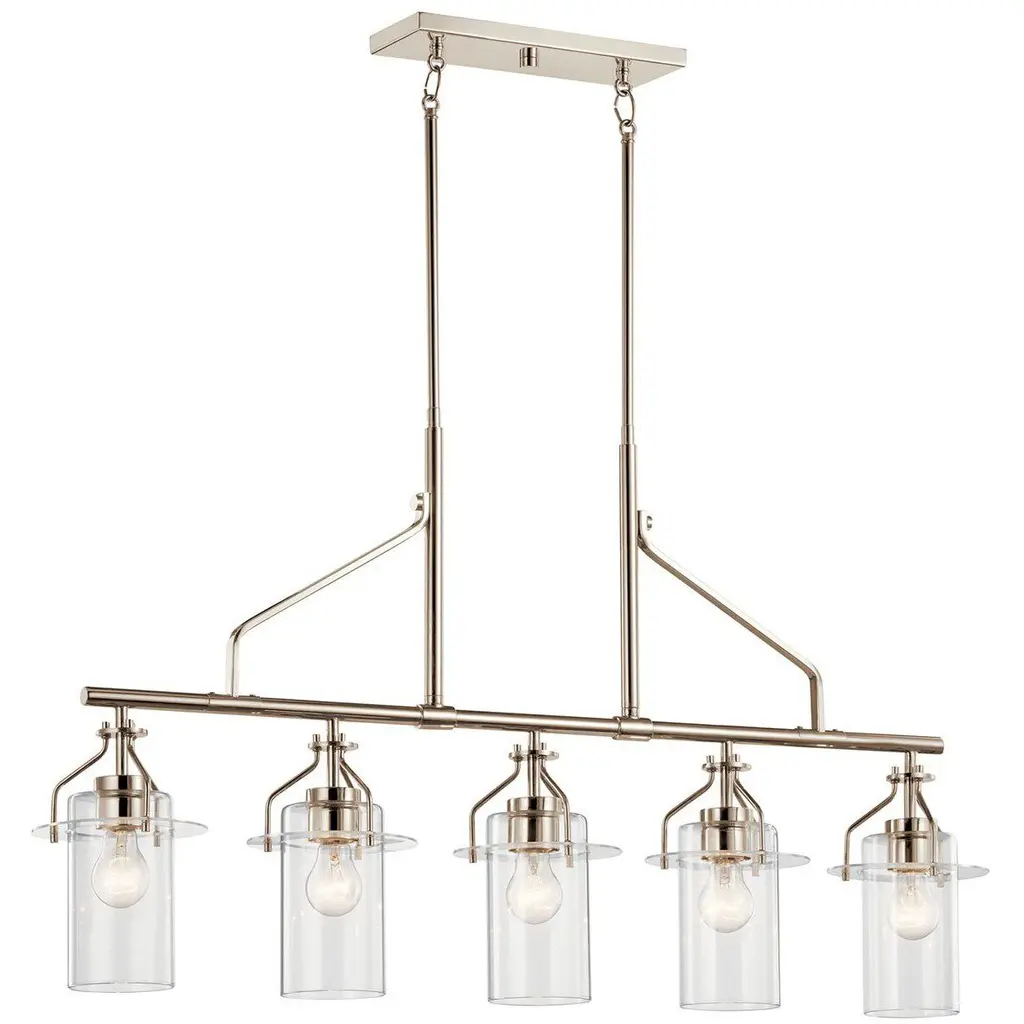 Everettâ„¢ 42 Inch 5 Light Linear Chandelier with Clear Glass in Polished Nickel
