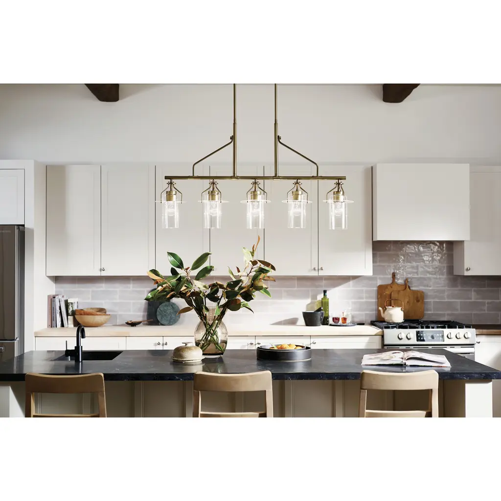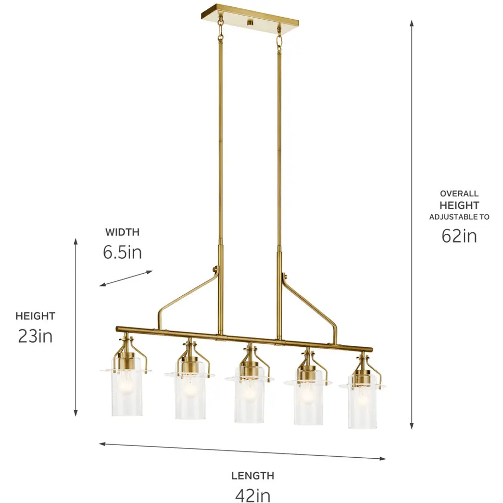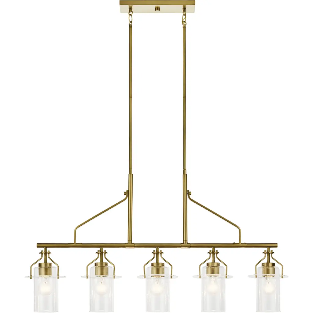 Everett 5 Light 6.5 Inch Brushed Brass Chandelier Linear Ceiling Light In Natural Brass
