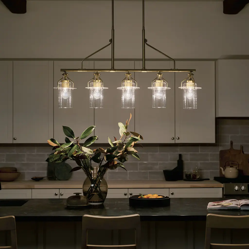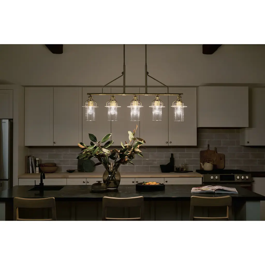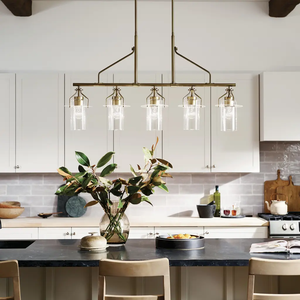 Everett 5 Light 6.5 Inch Brushed Brass Chandelier Linear Ceiling Light In Natural Brass