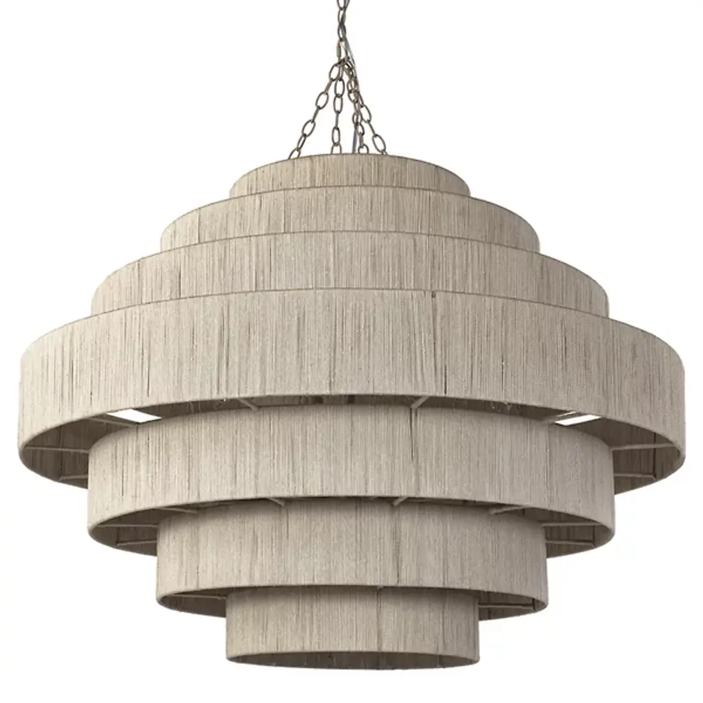 Make a grand statement with the Everly Oversized 5-Tier Chandelier from Palecek. Handwoven with meticulous craftsmanship, this chandelier is a work of art. Everly is made from durable metal, with an oversized design that instantly captures attention. The shade is meticulously handwoven from natural abaca rope, adding a touch of artisanal modernity to the coastal & nautical elements. With 5 tiers, this chandelier becomes a focal point in your space, creating an interplay of LED light and texture.