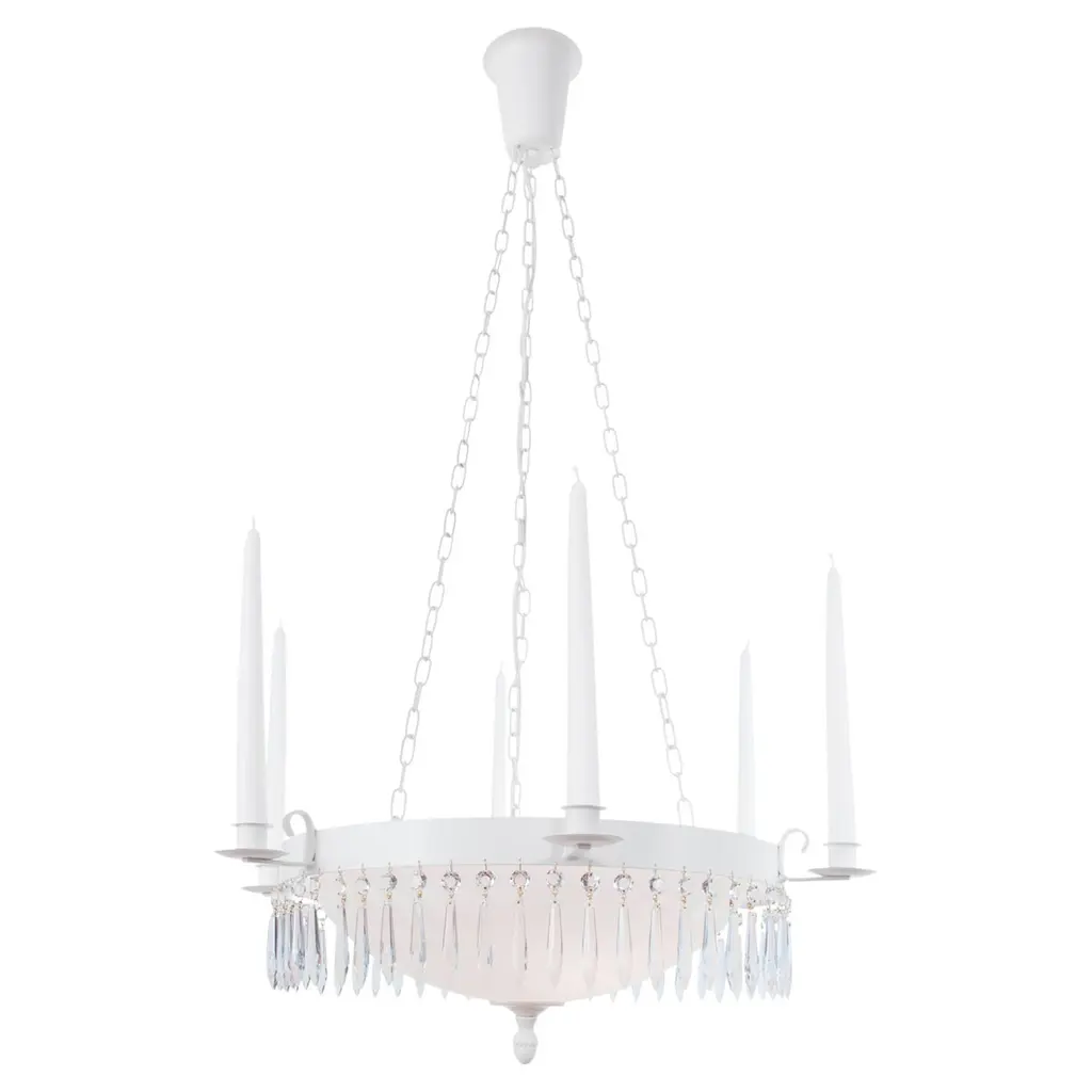 Evoque is a chandelier with a versatile and refined design, thanks to the arms gracefully curved and entirely created in carved crystal, available in white, teak or trasparent, highlighted by the metal structure with polished nickel (for the version in transparent or white crystal) or gunmetal finish (for the version in teak crystal).Electrical and technical characteristicsLED: 30x6w - E14Fluorescent lamp: 30x8w - E14 (not dimmable)Driver: TRIAC (included, dimmable)Voltage: 230 VEnergy class: A > A++IP20Certifications: CE/EAC/UL
