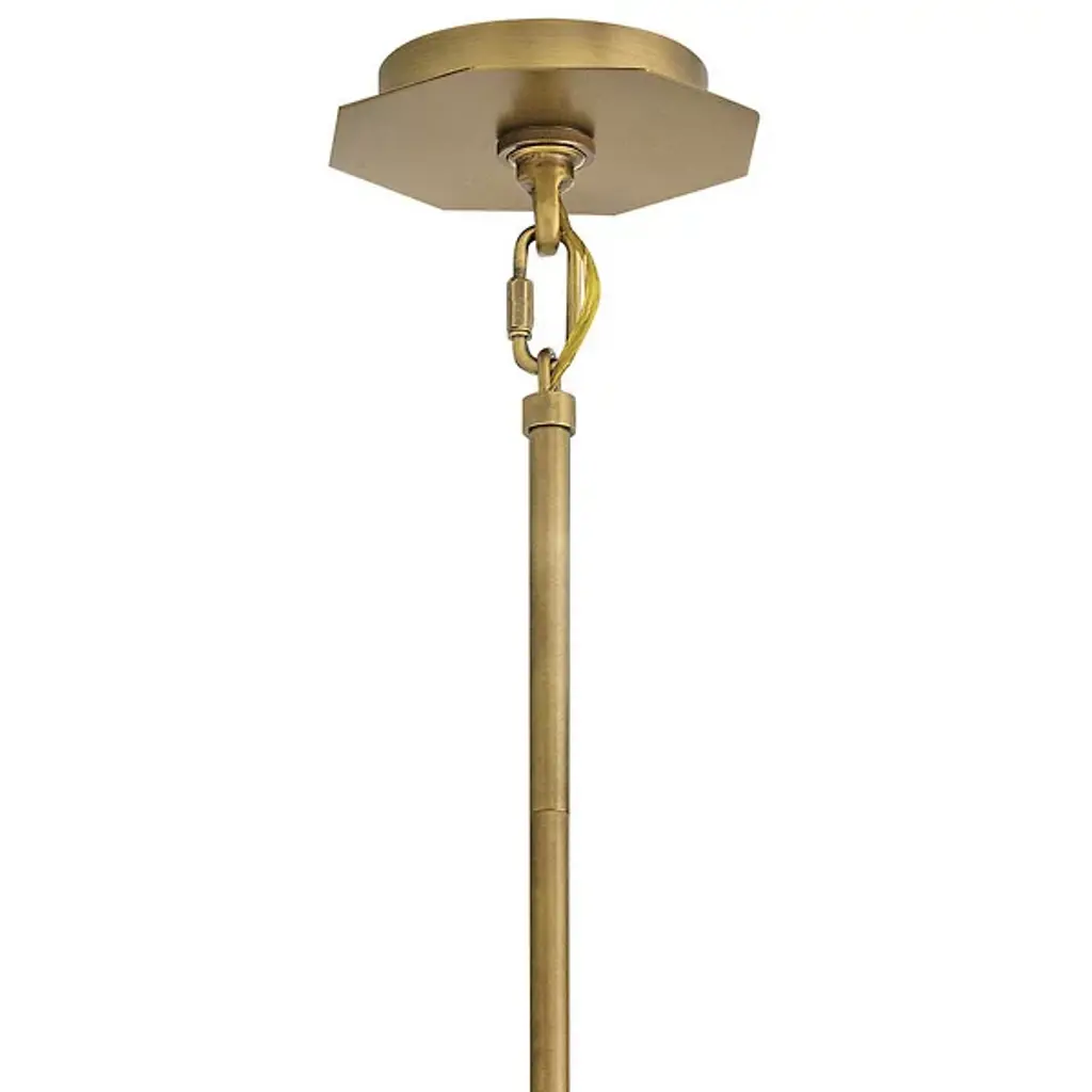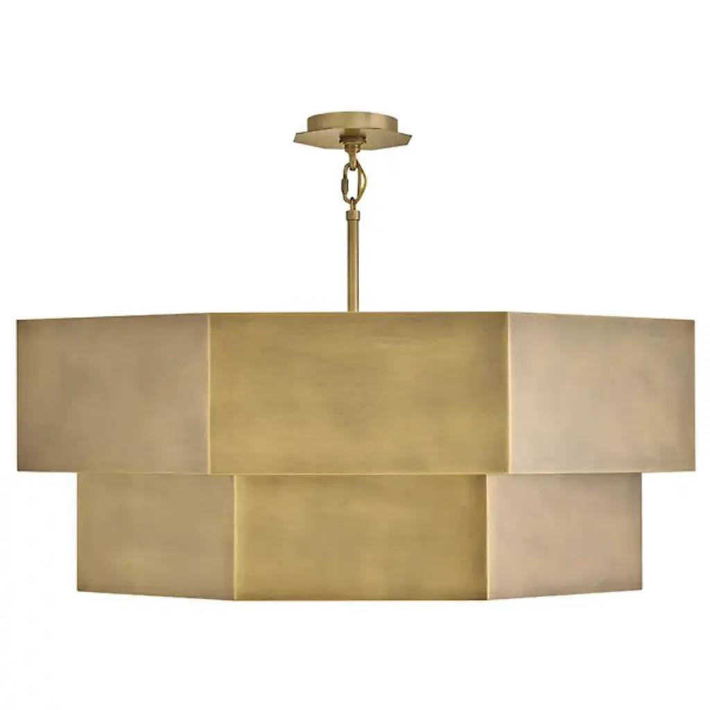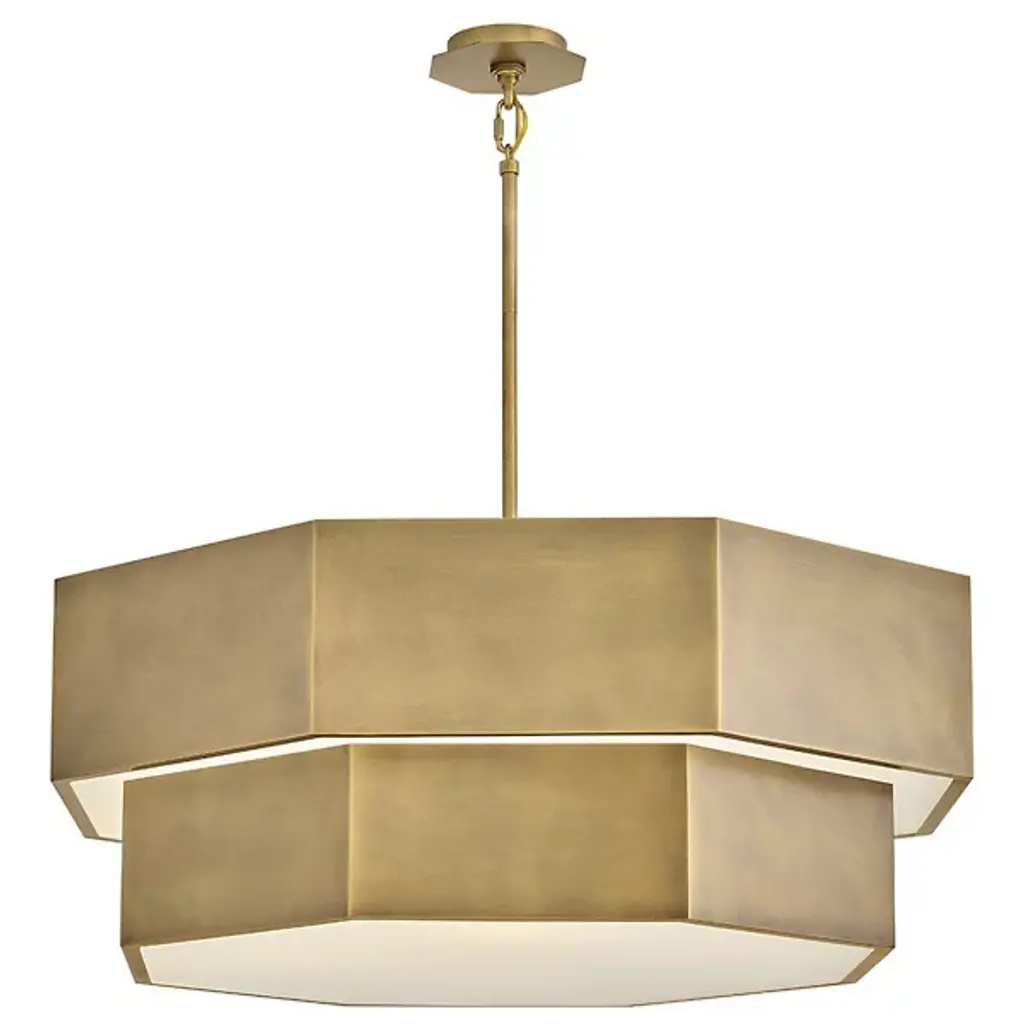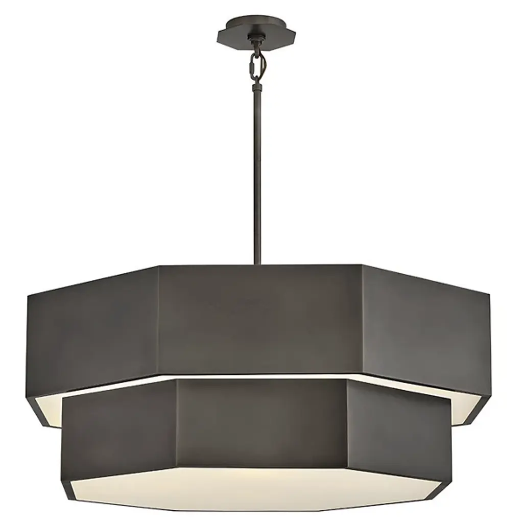 The Facet Chandelier from Hinkley uses angular geometry to create a multidimensional lighting experience. Each faceted plane interacts with light differently, producing varied luminosity across its drum-shaped structure. This fixture can adapt to various installation methods, functioning as either a pendant or semi-flush mount, depending on ceiling height and room dimensions. Multiple stem options allow for precise height adjustments to achieve ideal positioning in any space. The bold metal framework provides structure, defining the geometric planes that characterize this distinctive design. This chandelier works beautifully in dining areas, entryways, or modern living spaces where its architectural presence becomes a focal point.