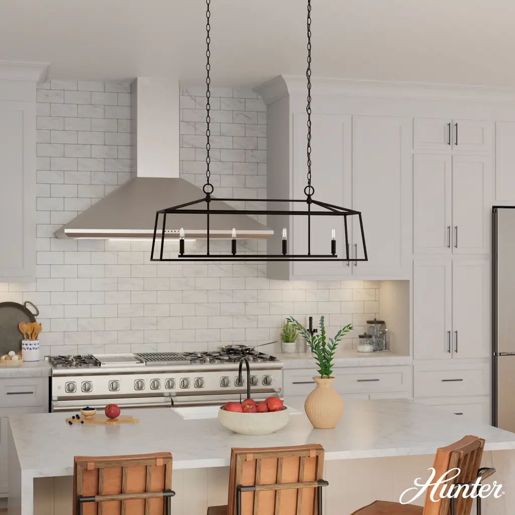 Infused with a touch of "vintage greenhouse" style, the Fair Oaks Linear Chandelier radiates charm and elegance. This delicate, classic piece, designed in partnership with Jasmine Roth, combines sharp geometric lines and a soft, welcoming glow, making it a standout feature in any kitchen or dining room. Elevate any space or style with the Fair Oaks Chandelier and bring out its beauty wherever you put it! Harmoniously mix and match with other fixtures from the Jasmine Roth Collection or our sophisticated ceiling fan designs to achieve a cohesive and captivating aesthetic.