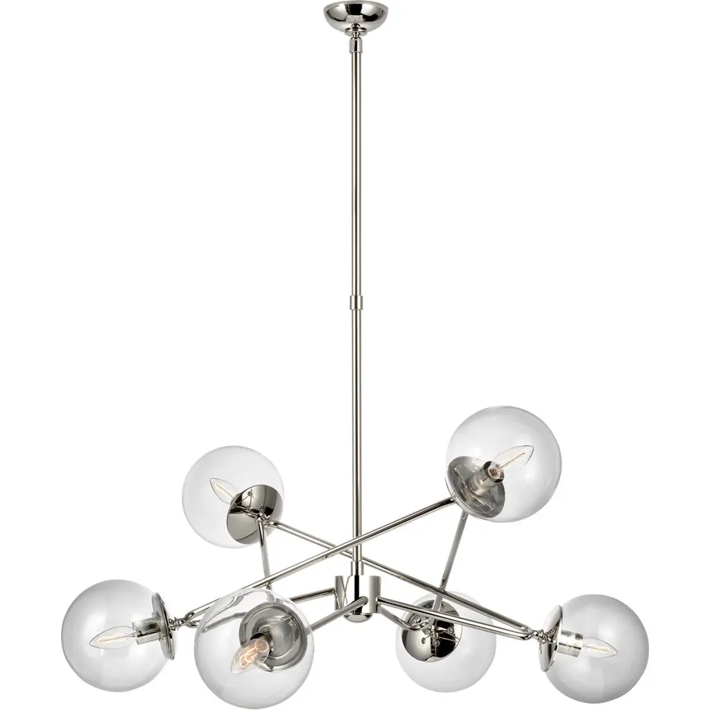 The Fairfax Collection brings high style to your space with a sleek frame and a cluster of hand-blown glass globes, suspended with an organic hang that adds a touch of fluidity and movement. This striking design combines elegance and contemporary flair, making it a standout feature in any room.