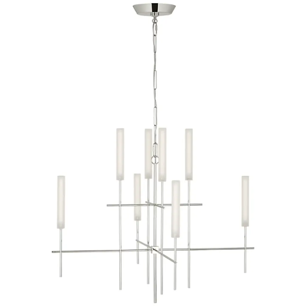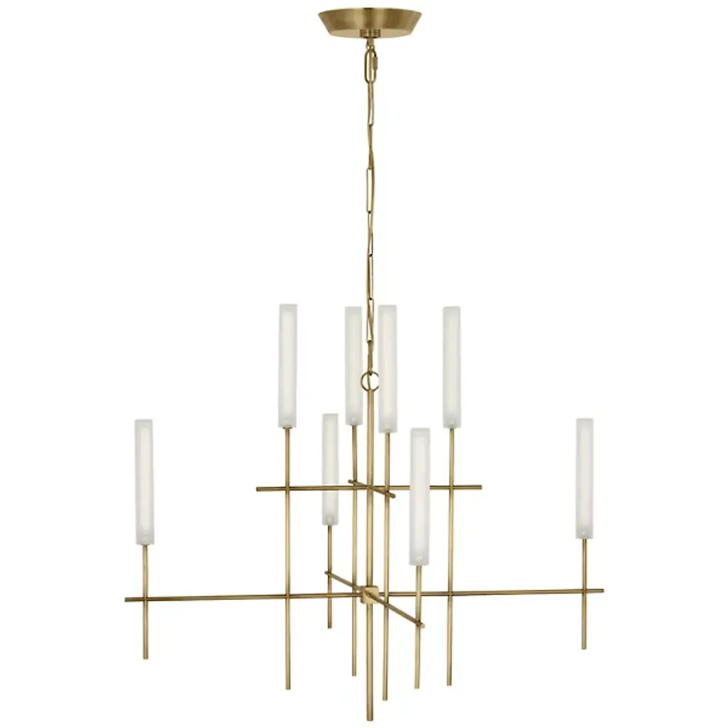The Fay LED Chandelier from Visual Comfort Signature is a contemporary masterpiece, elevating rooms with a sleek design. Its cylindrical frosted glass shades exude modern elegance, while its clean lines and minimalist aesthetic make it versatile for any space. Designed by Ian K. Fowler, this fixture combines style and functionality, illuminating your home with sophistication. This exquisite wall sconce adds a touch of modern flair to any space it adorns.