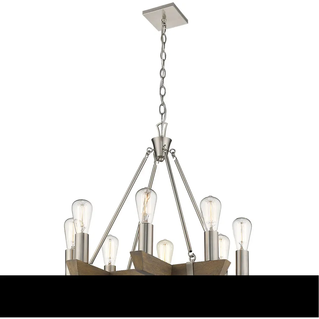 Raw wood and a satin nickel finish combined in perfect harmony. Finnick's unique style would look at home on an ancient Finnish sailing ship. Use Edison style bulbs to go with a more rustic look, or use globes or tube style bulbs to have a more modern look.