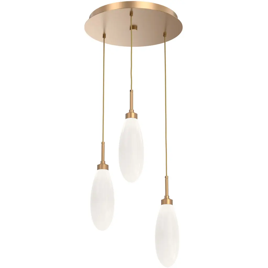 Fiori Round Multi-Port 3 Pc.-Gilded Brass-White Glass Lens-Brass Cloth Braided Cord-LED