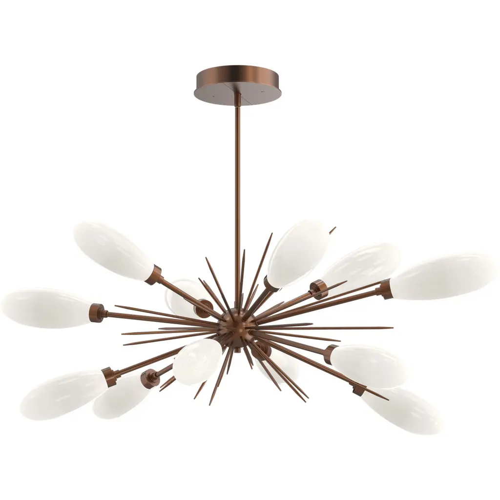 Fiori Starburst Chandelier - 46" -Flat Bronze-White Glass Lens-Threaded Rod Suspension-LED