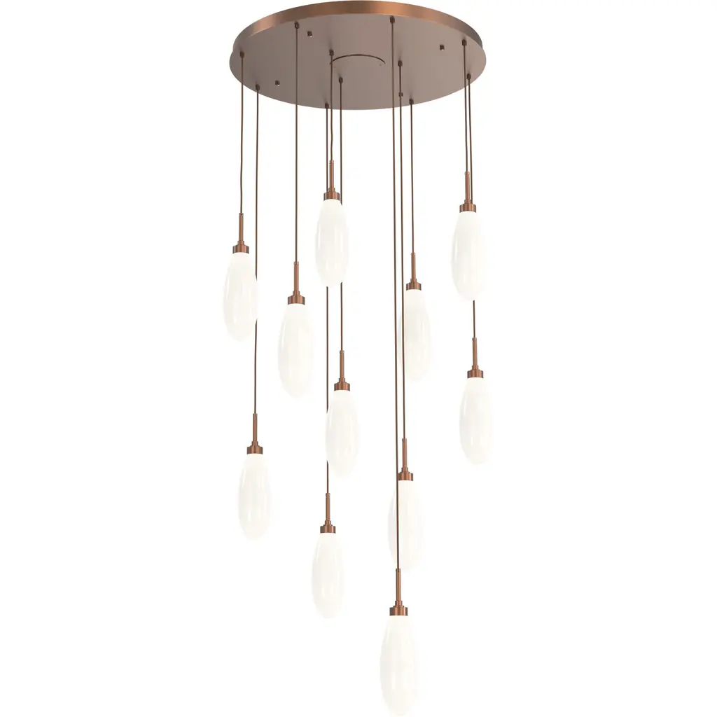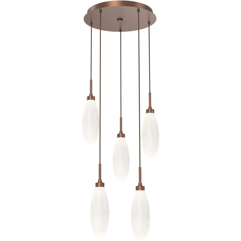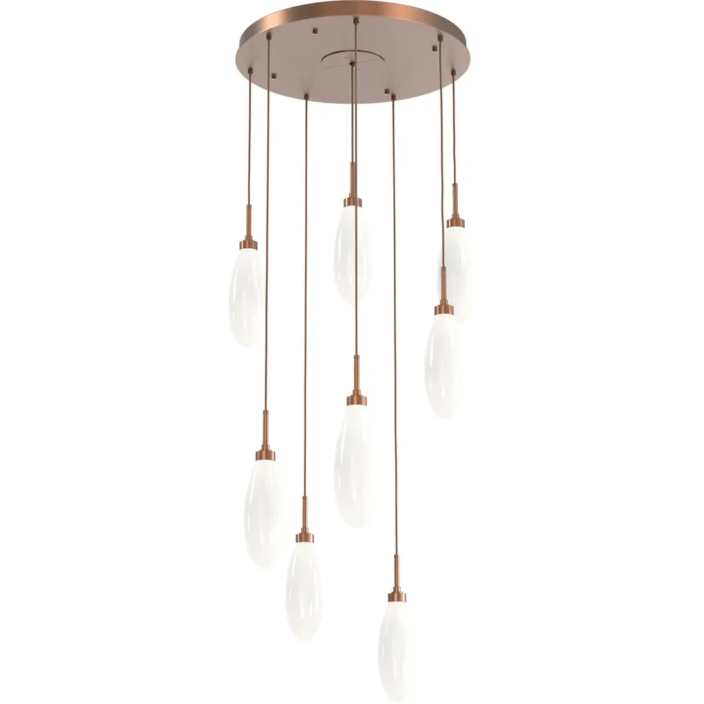 Fiori Round Multi-Port 8 Pc.-Flat Bronze-White Glass Lens-Bronze Cloth Braided Cord-LED