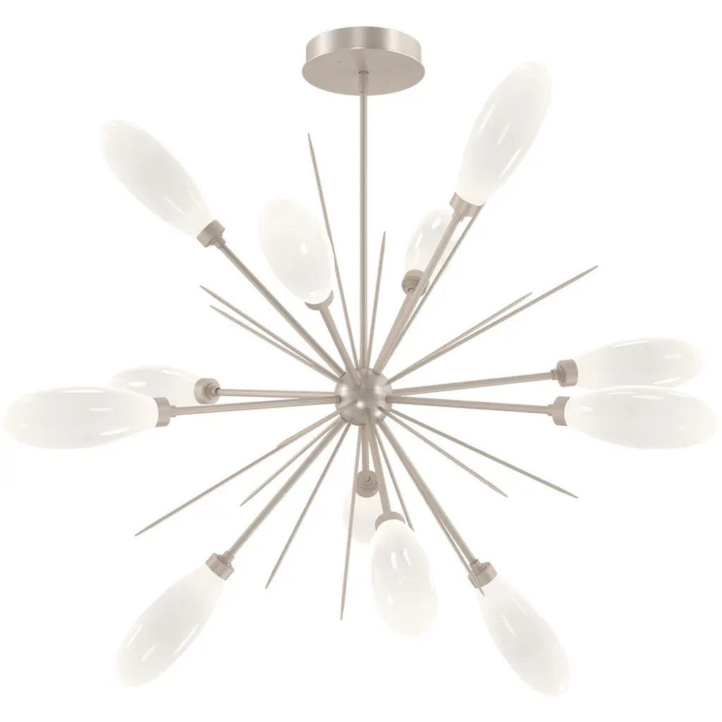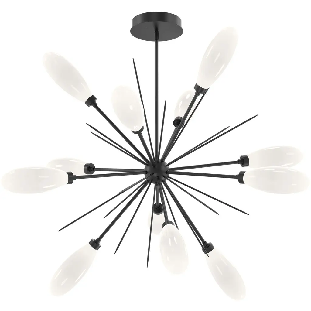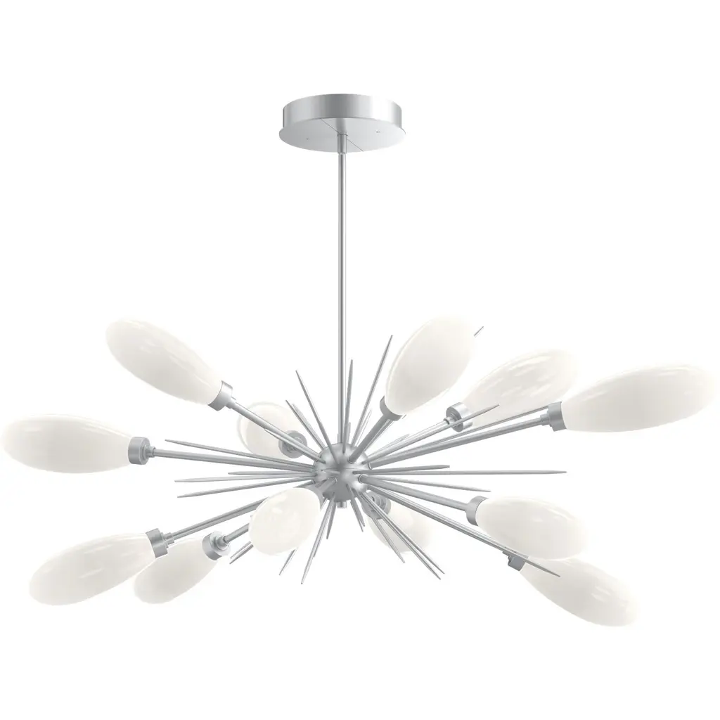 Fiori Starburst Chandelier - 46" -Graphite-White Glass Lens-Threaded Rod Suspension-LED