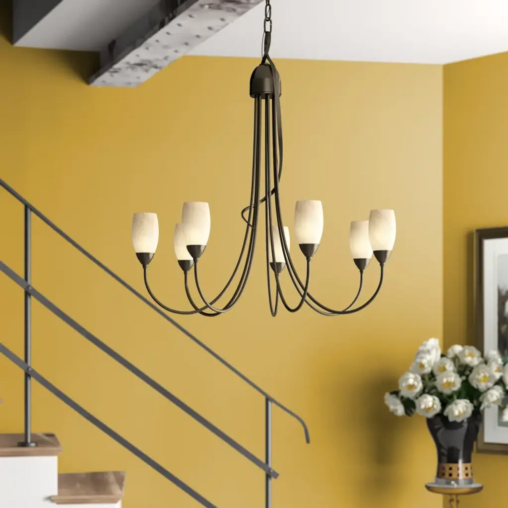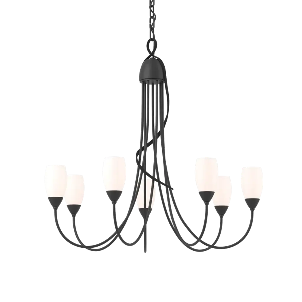 Our artisans fashion our seven-armed Flora Chandelier here in Vermont. A single tendril wraps around the light stems as the lights themselves all turn up gently toward the sky, like waiting for the first rays of the morning sun to slip over the green mountains. All Hubbardton Forge products are hand-crafted to last one at a time in Vermont.