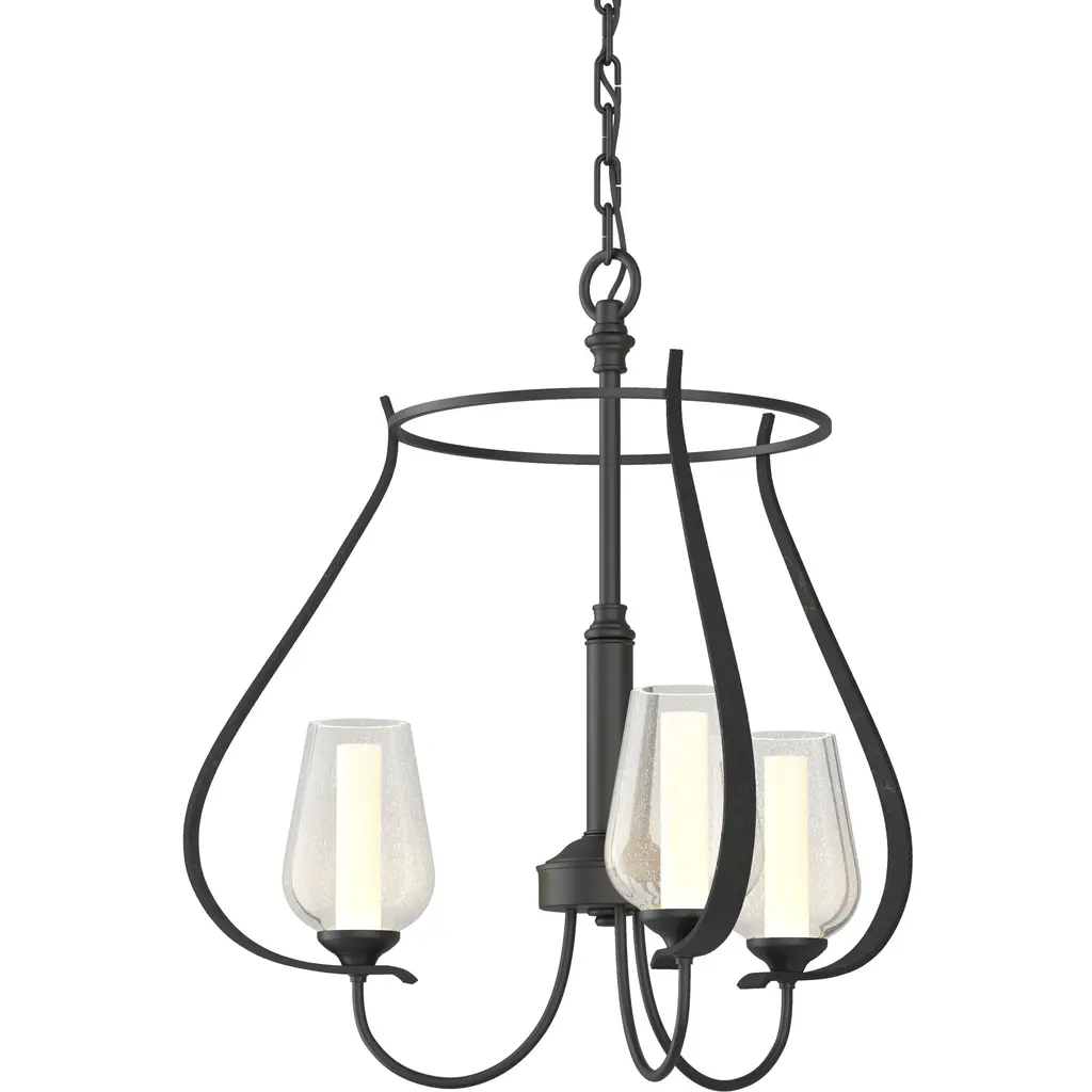 Charming and traditional, our Flora Chandelier by Hubbardton Forge features a flared rounded form descending from a center ring. This form creates a flowing appearance that allows the eye to continuously wander, taking in every characteristic the fixture has to offer.Genuinely hand-crafted in Vermont using environmentally safe metal forging techniques. Contains a powder coated finish.Shown in 3-Arm Chandelier in Bronze finish with Seeded Clear glass