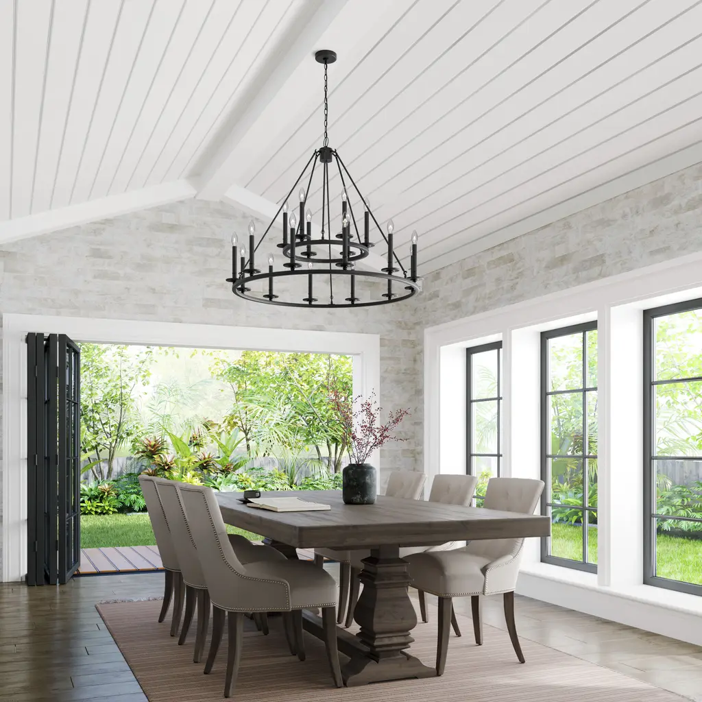 Unassuming, yet thoroughly striking, the Florence Collection celebrates simple candle-style luminaries and minimalistic lines in a nod to antique style lighting. The elegant wagon wheel design is steel construction that is further enhanced by the matte black finish.