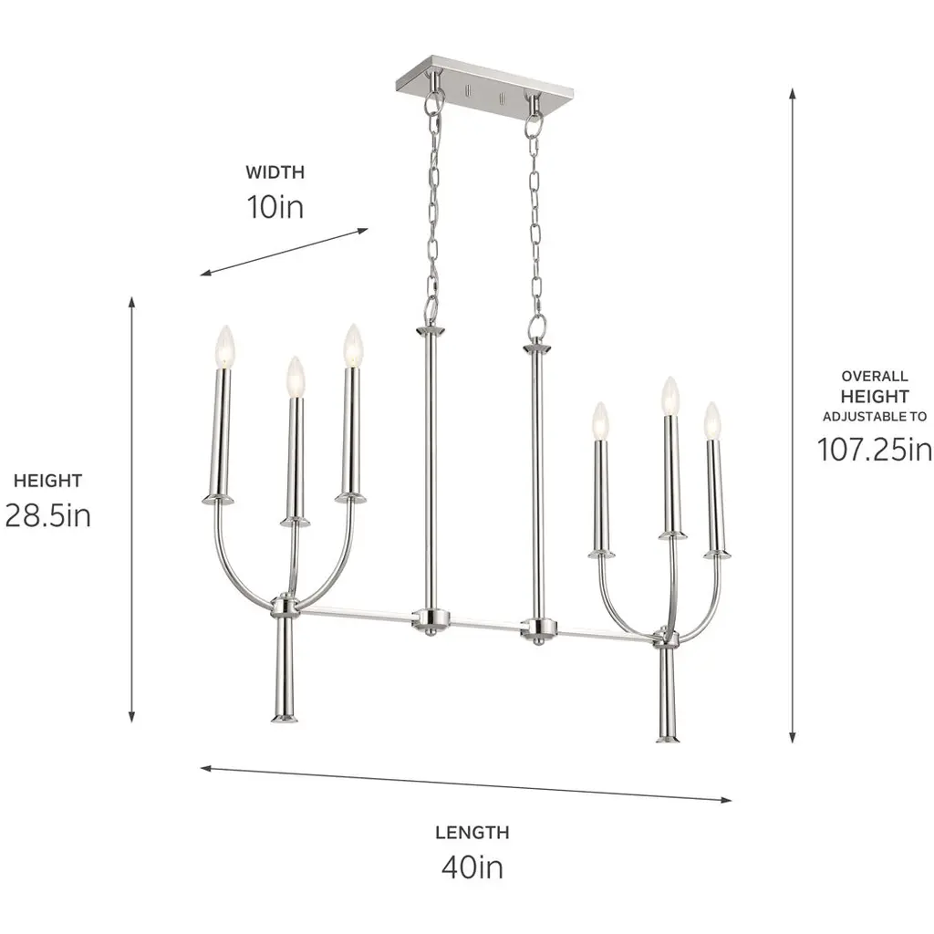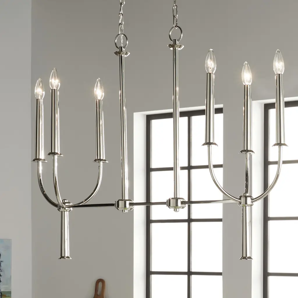 Florence 6 Light 10 Inch Polished Nickel Chandelier Linear Ceiling Light