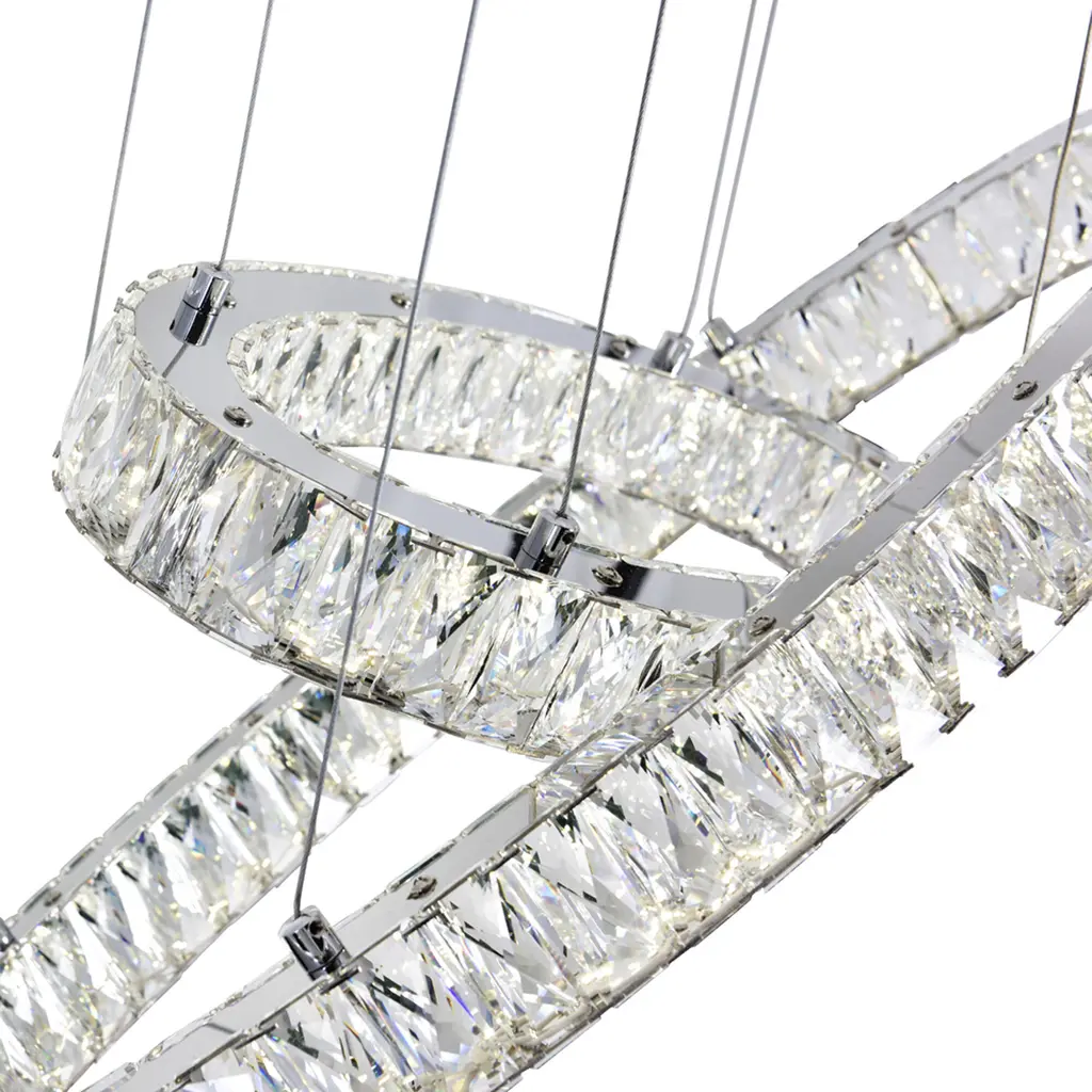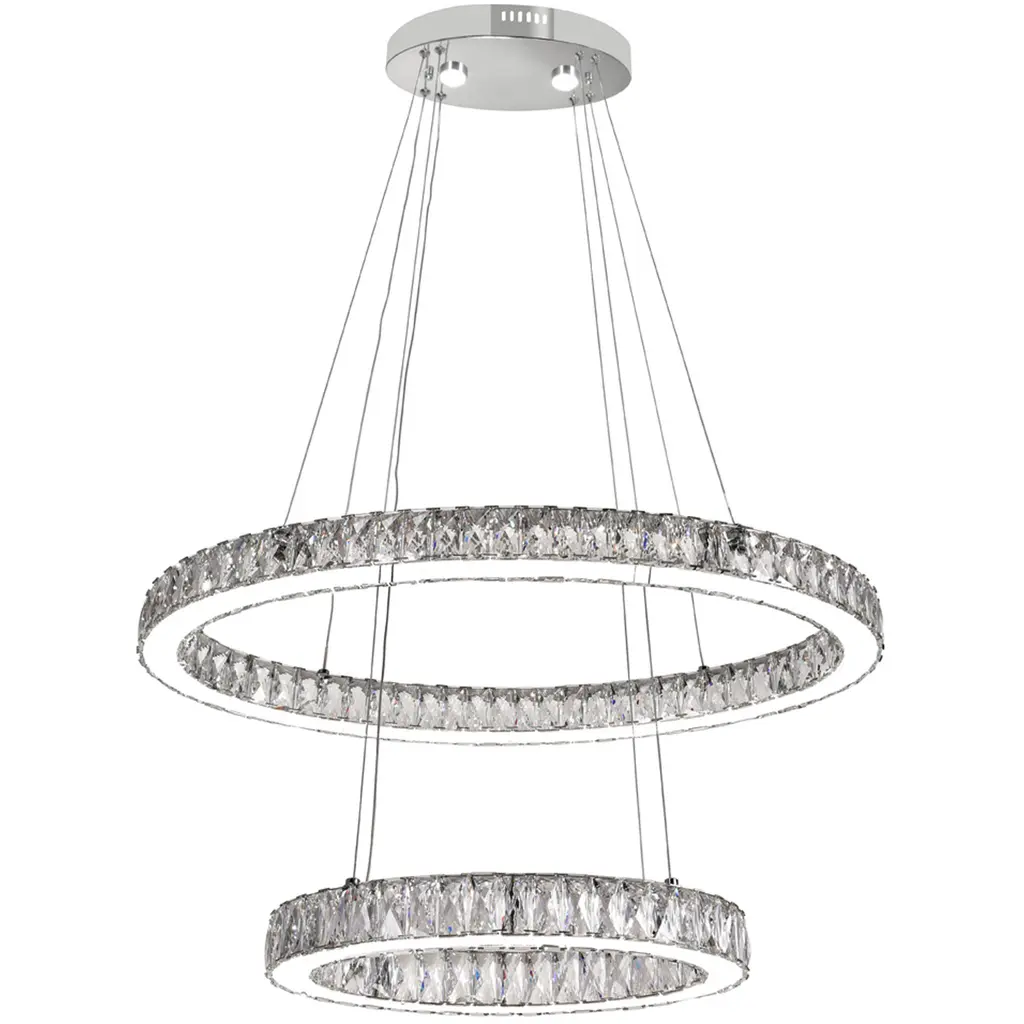 This Florence 2 Ring LED Chandelier ups the glam factor of any space in an effortless way. Designed beyond the usual, here is a light source composed of two crystal halos that can be suspended at your desired angle. Make them look as if intersecting or go with the typical concentric silhouette. Whichever way you hang this chrome chandelier, expect it to cast a brilliant glow and a striking style to your home.