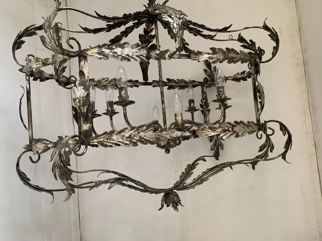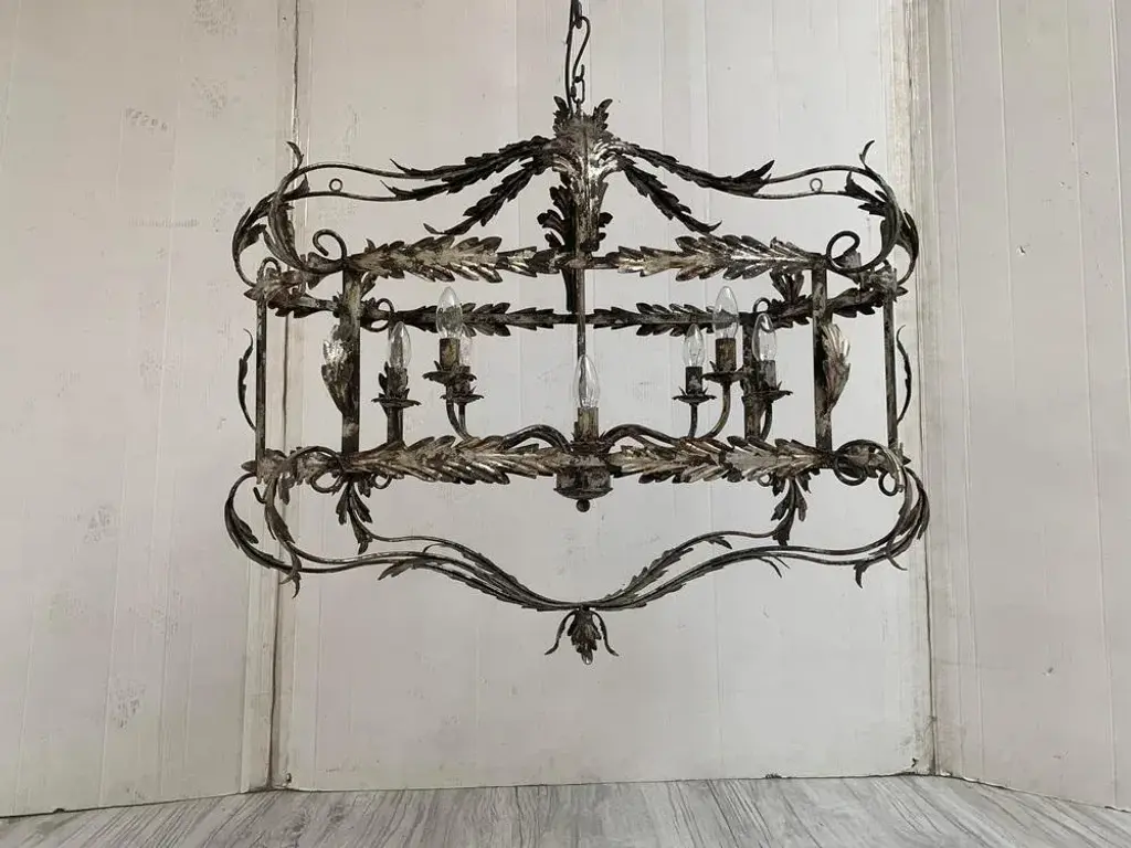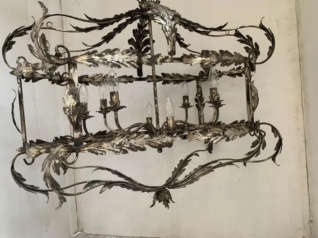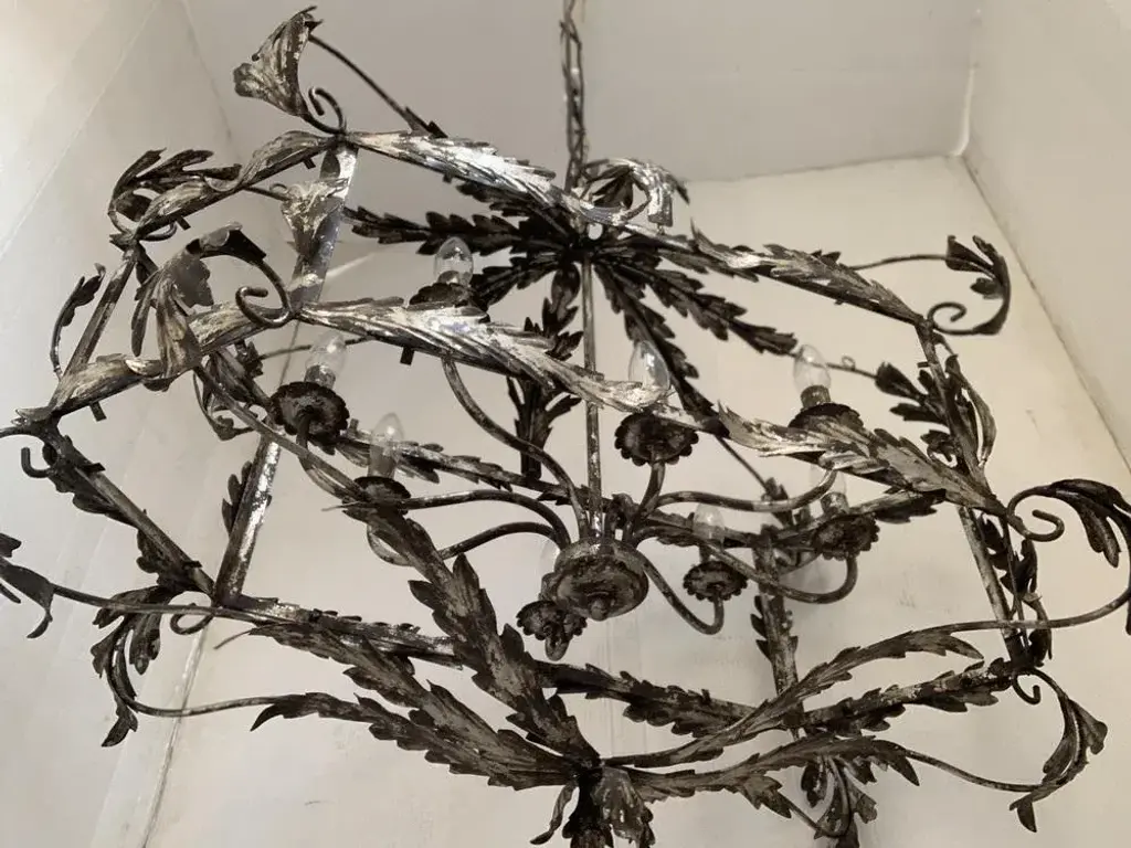 Florentine Art Silver + Argilla Metal Wrought Iron Chandelier From Simoeng, Italy