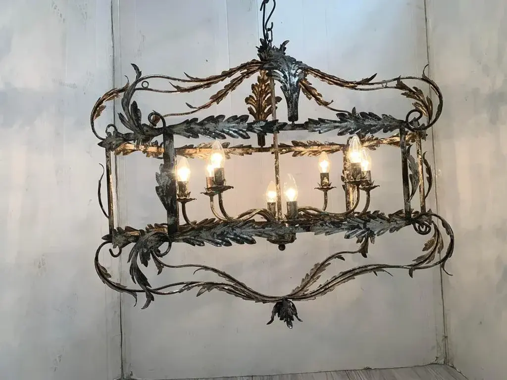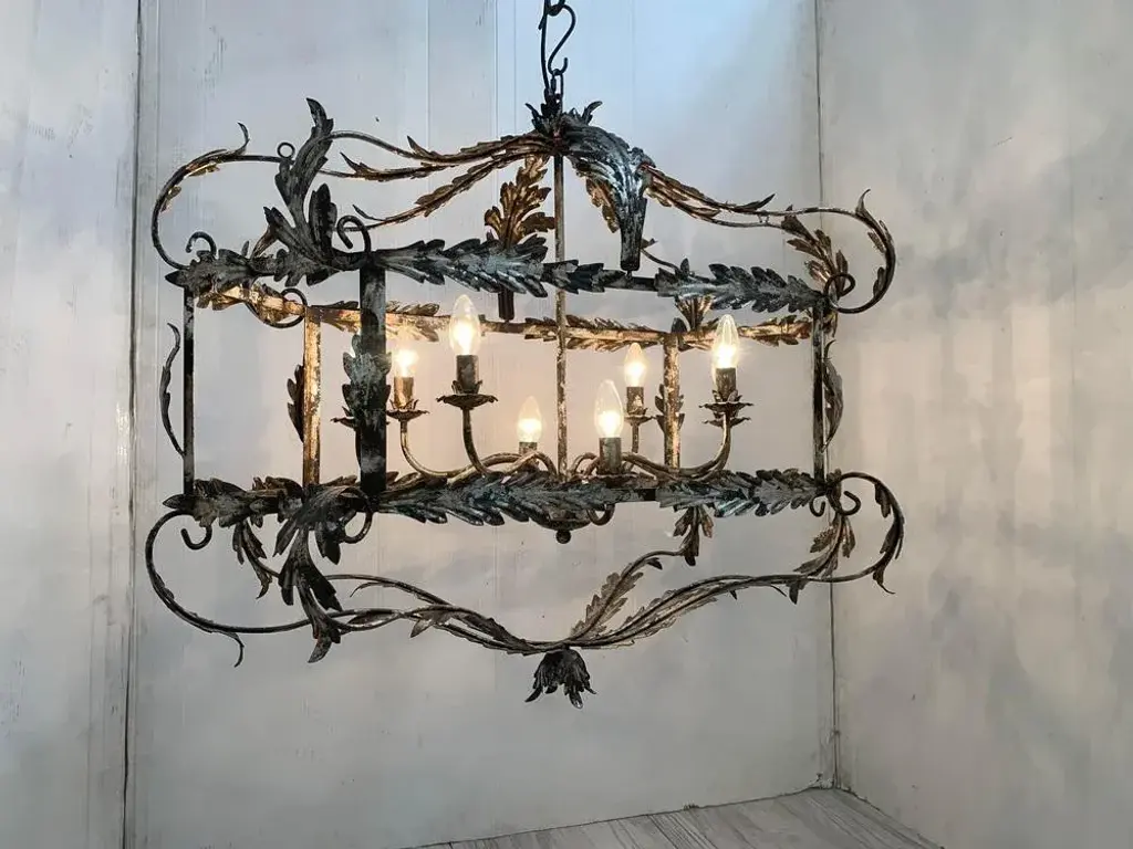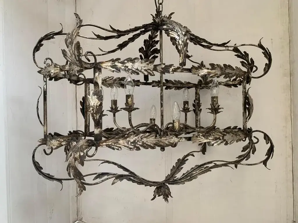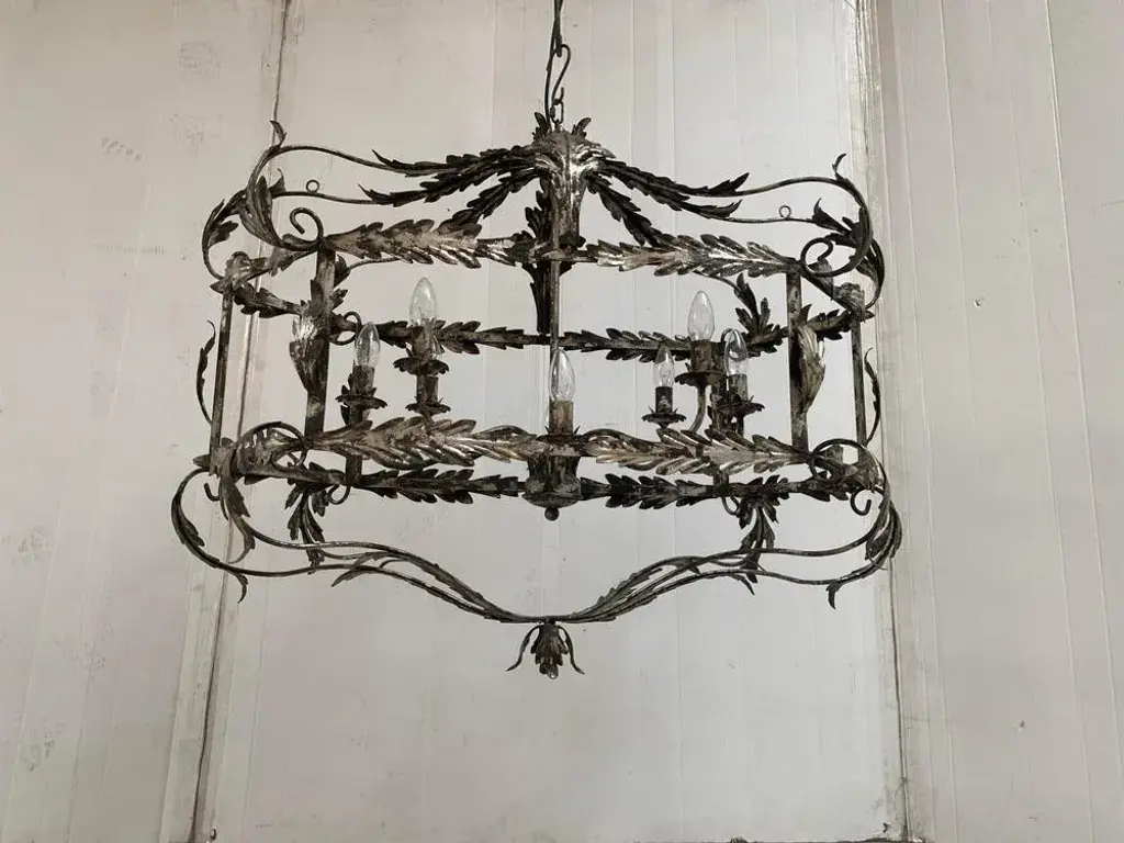 Florentine Art Silver + Argilla Metal Wrought Iron Chandelier From Simoeng, Italy