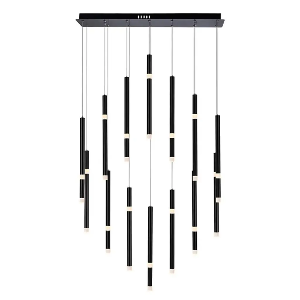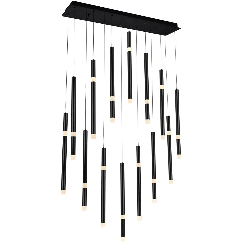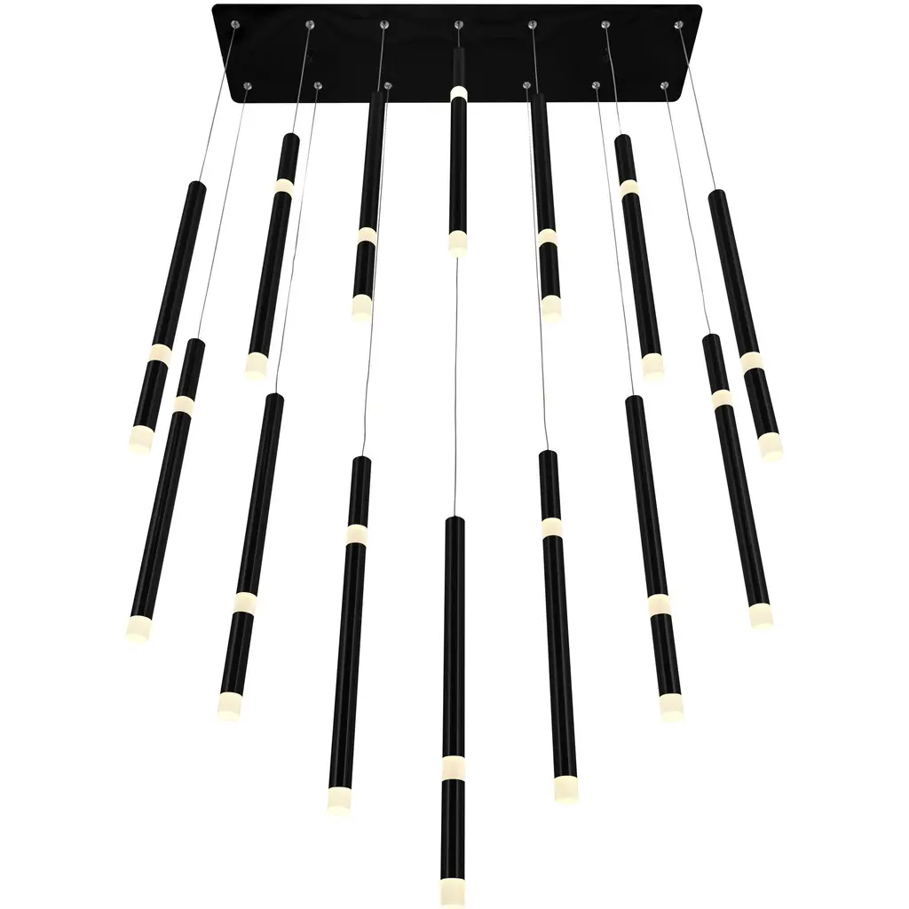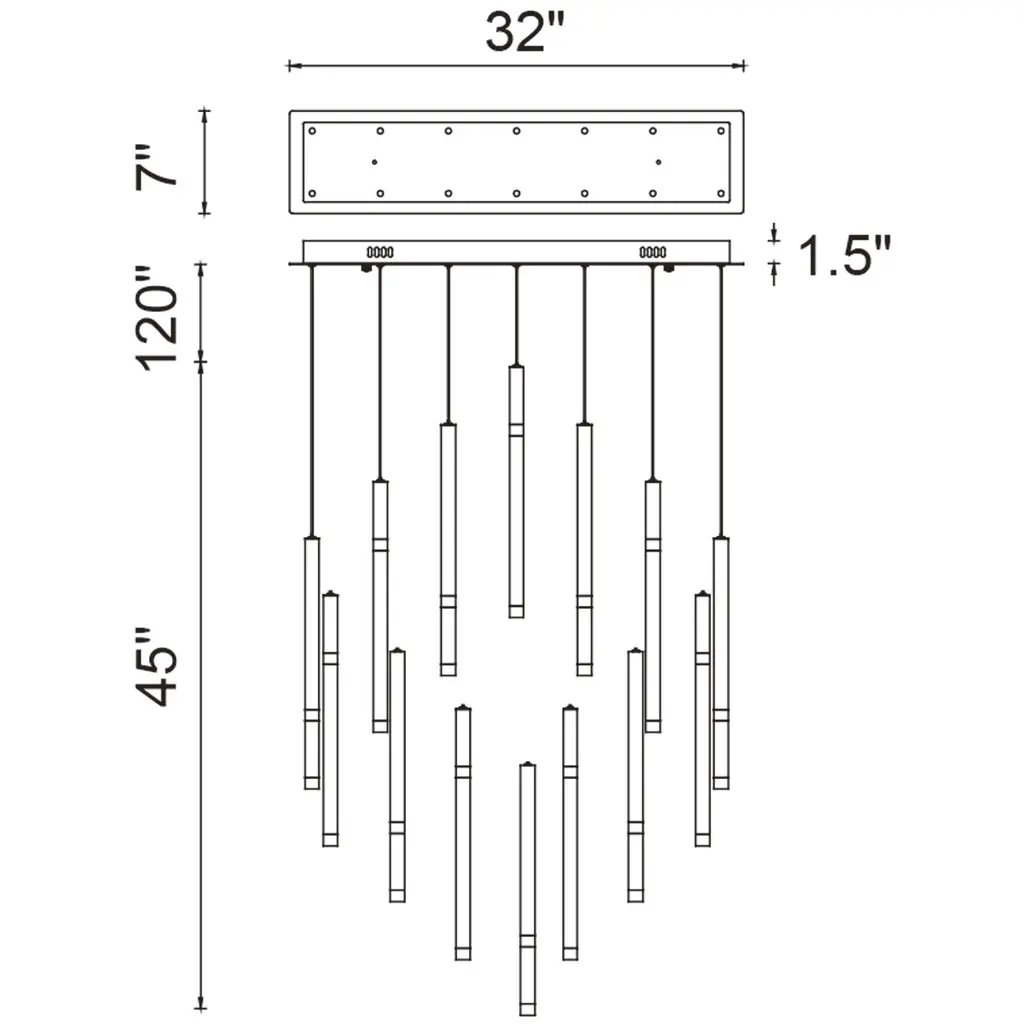 Infuse your space with modern character using the Flute 32'' 14-Light Integrated LED Chandelier. Designed with a black rectangular canopy and 14 slim pendant lights, this linear fixture adds drama and elegance without excess. The adjustable cords give you freedom to design your own arrangementsymmetric or asymmetricallowing for a personalized look. Perfect for modern living rooms, dining spaces, or kitchen islands, this fixture offers ambient lighting and sculptural appeal in one sleek package. Finish: Black Canopy Size: 32" (Rectangular) Light Source: 14 Integrated LED Lights Certification: BACL Certified Warranty: 3-Year Manufacturer Warranty