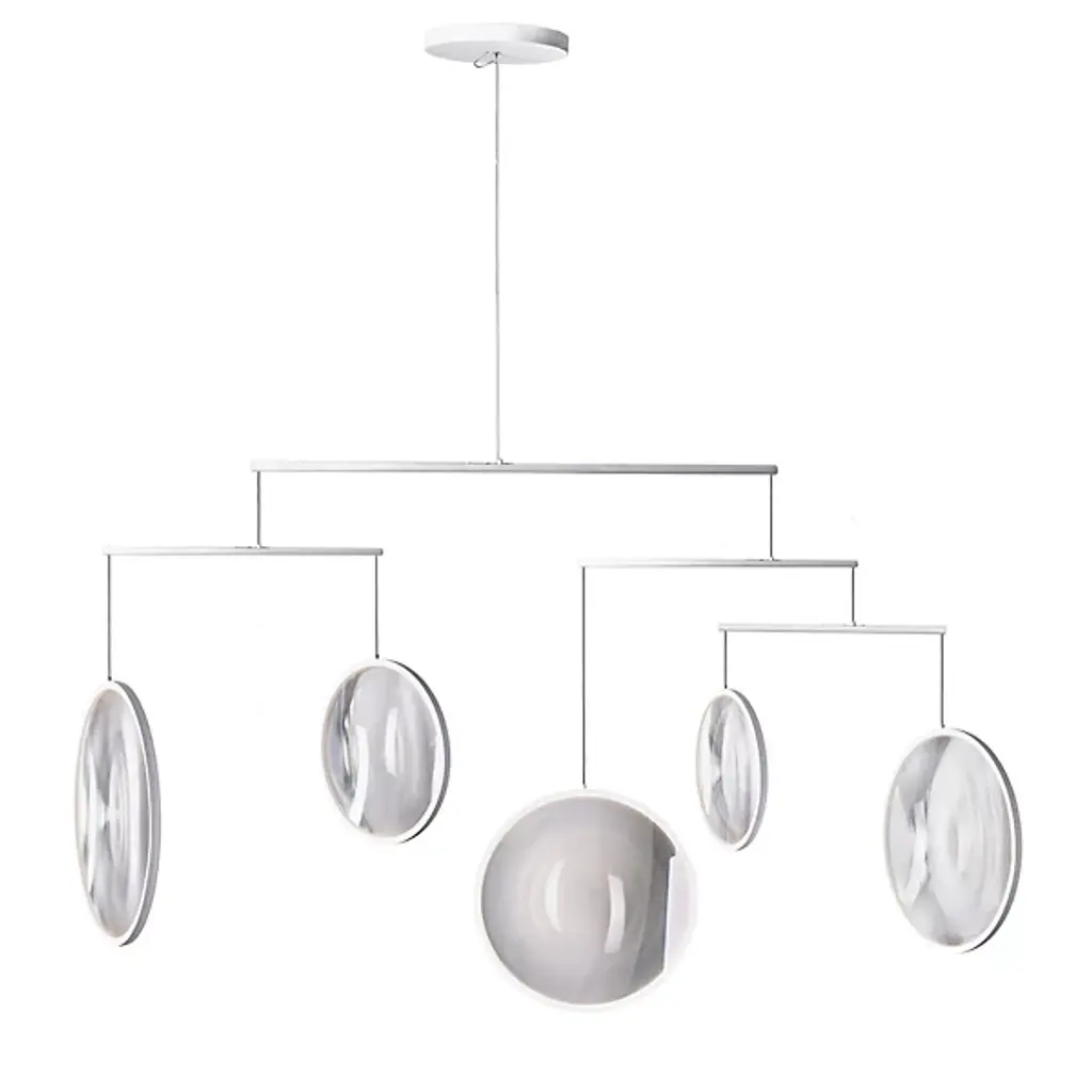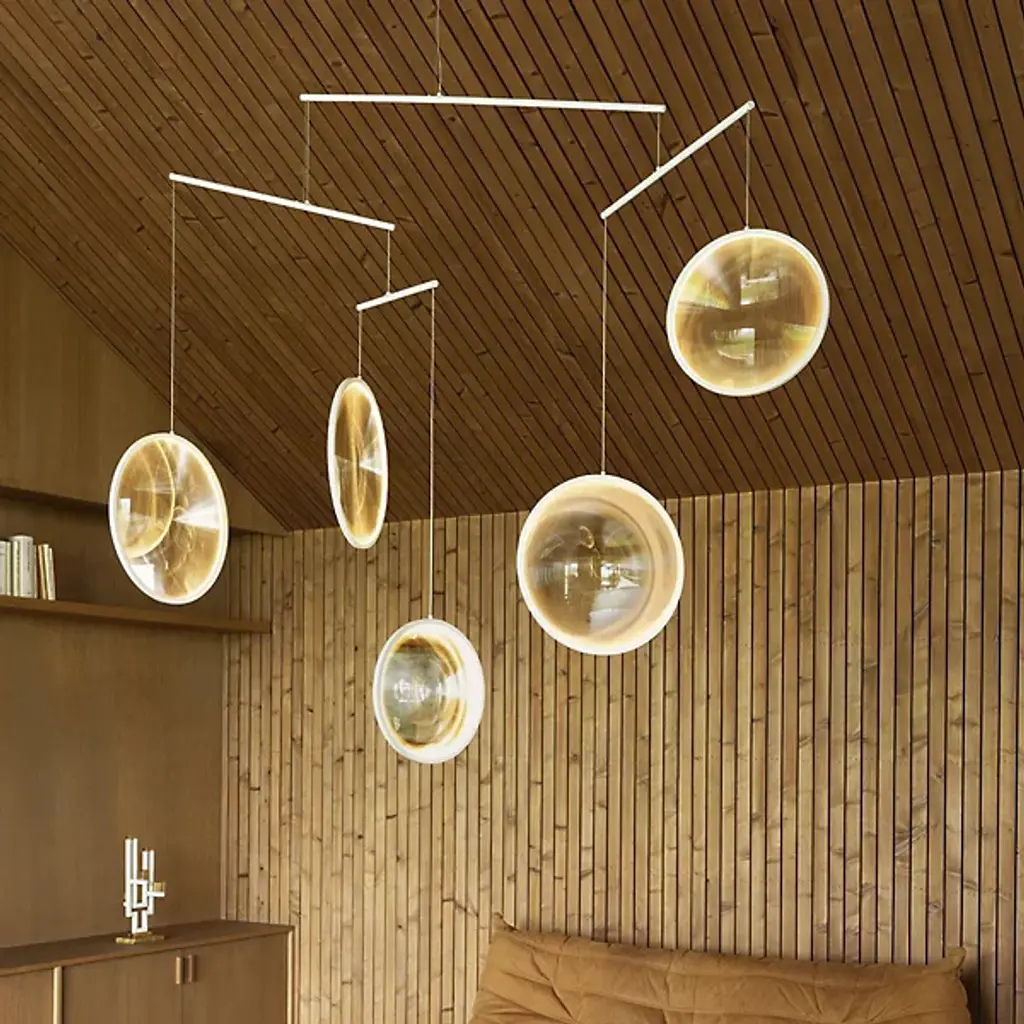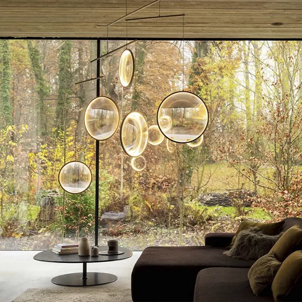 Illustrating the idea of bubbles floating through space and time, the Focus LED Chandelier from DCW editions creates a spellbinding experience with a delicate design evocative of a mobile sculpture. Designer Yuji Okitsu’s work sees shape as the key facet of a space, enhancing everyday life. Okitsu brings a refined design approach that shows in the chandelier’s slender crossbar and fine wire combination. The wires lead the eye to the open metal rings that receive an array of LEDs and an acrylic diffuser. The acrylic acts as a lens by focusing one’s eyes on its reflections and riveting highlights. The acrylic helps to dish out a cozy, atmospheric glow.