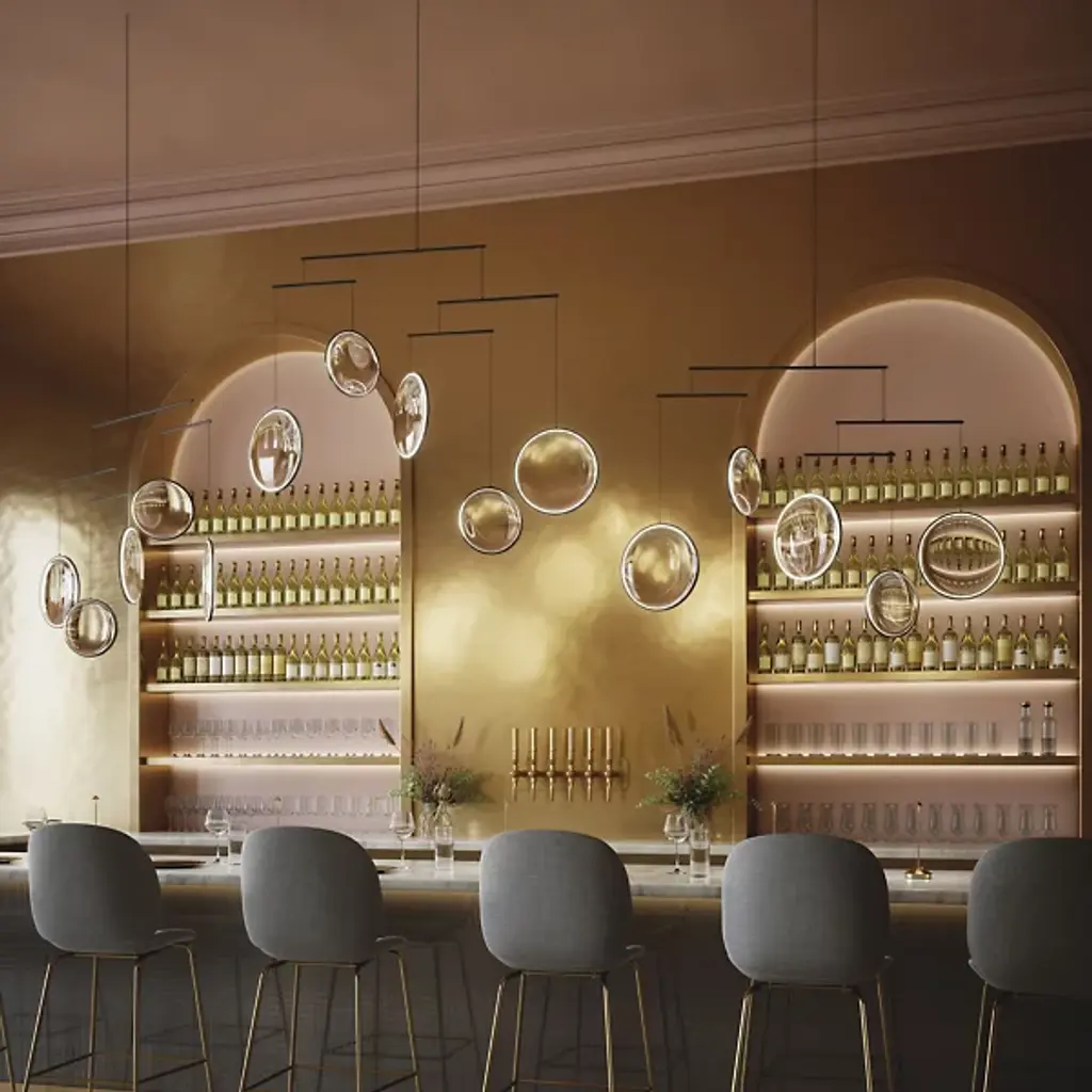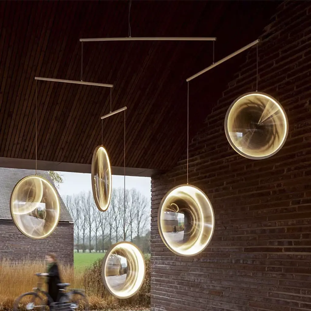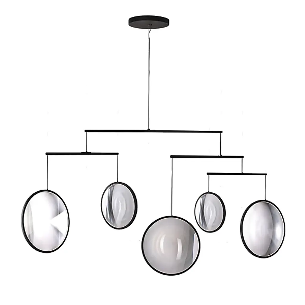 Illustrating the idea of bubbles floating through space and time, the Focus LED Chandelier from DCW editions creates a spellbinding experience with a delicate design evocative of a mobile sculpture. Designer Yuji Okitsu’s work sees shape as the key facet of a space, enhancing everyday life. Okitsu brings a refined design approach that shows in the chandelier’s slender crossbar and fine wire combination. The wires lead the eye to the open metal rings that receive an array of LEDs and an acrylic diffuser. The acrylic acts as a lens by focusing one’s eyes on its reflections and riveting highlights. The acrylic helps to dish out a cozy, atmospheric glow.