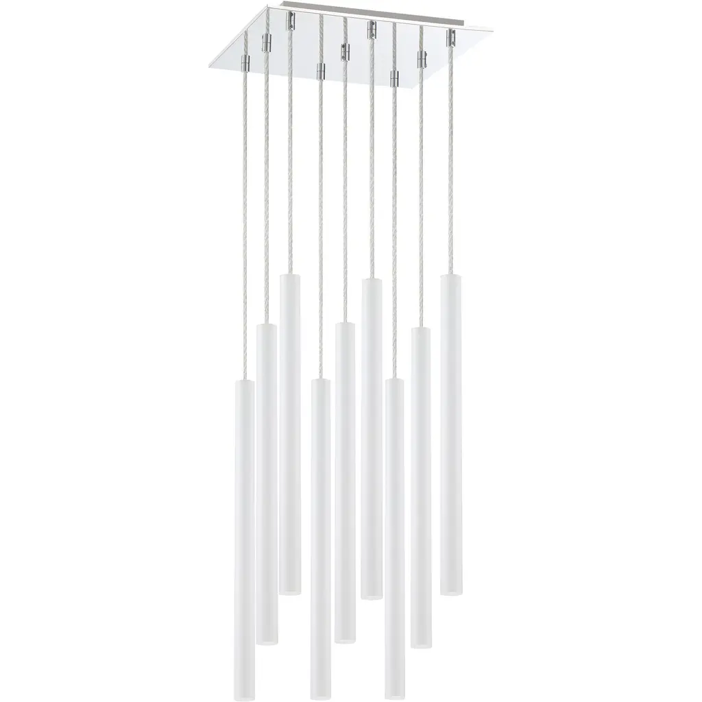 Add a stylish focal point in a modern dining room with the sleek lines from this fourteen-light pendant light. Full of clean lines, the windchime-inspired silhouette is streamlined with a matte white finish.