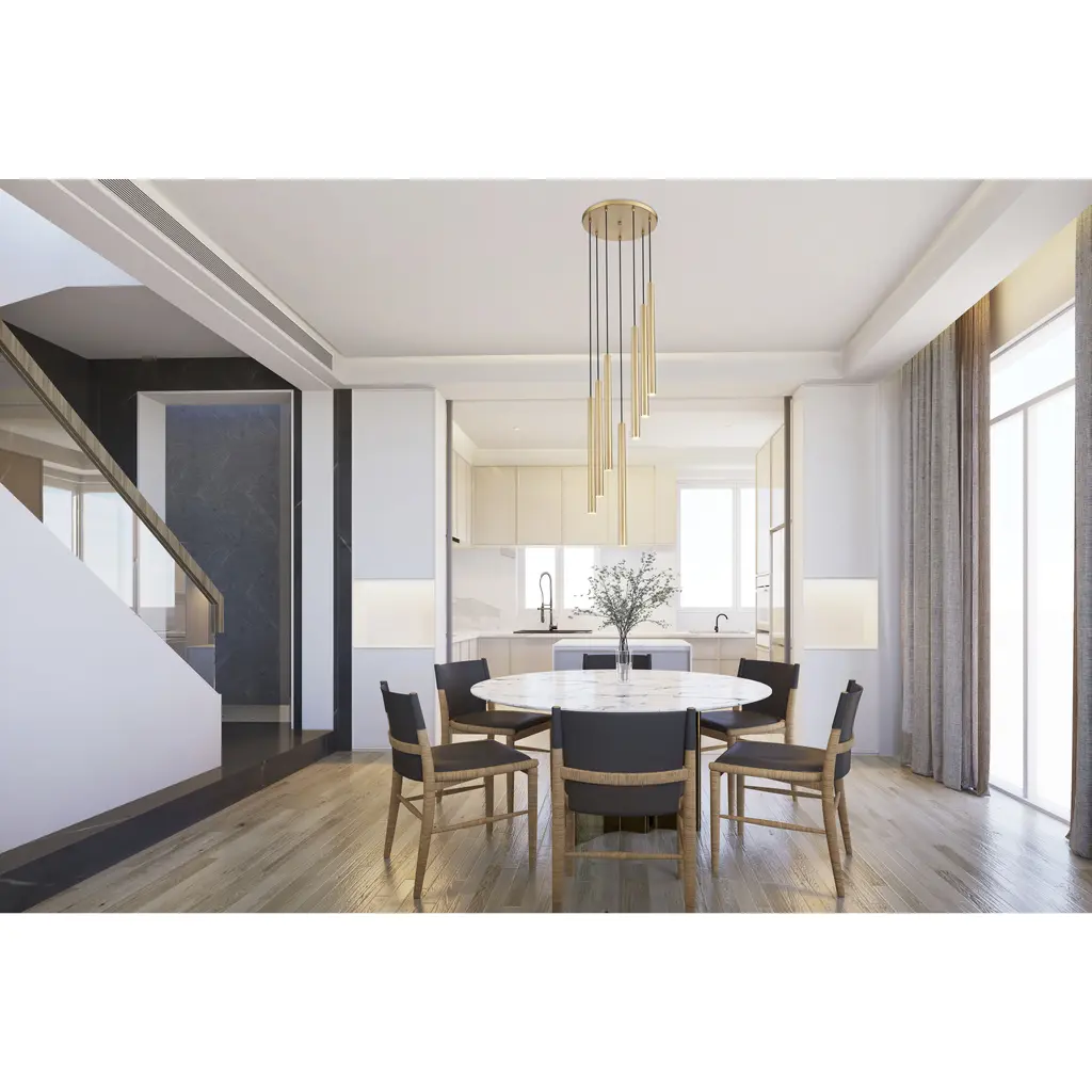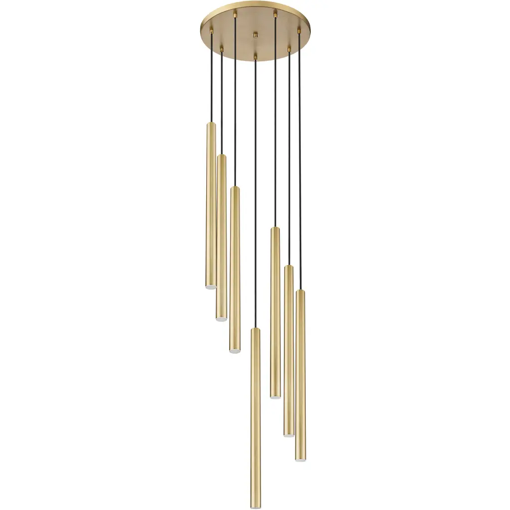 Dimmable LED lights bring versatility and a wonderful ambiance to this modern seven-light chandelier. It's an energy efficient choice that offers dimmable lighting, perfect over an entry, dining table, or staircase. Modern gold finishing adds richness and warmth, sure to stand out in your contemporary decor.