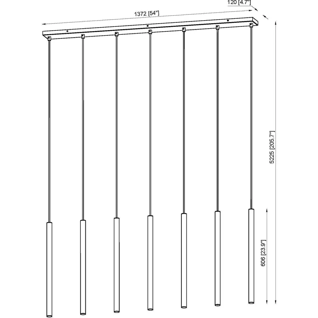 Infused with the sophisticated warmth of a modern gold finish, this contemporary seven-light linear chandelier adds an inviting ambiance over a dining table or kitchen island. It boasts an elongated silhouette paired with long, slim shades, casting welcoming LED illumination that's both dimmable and energy efficient.