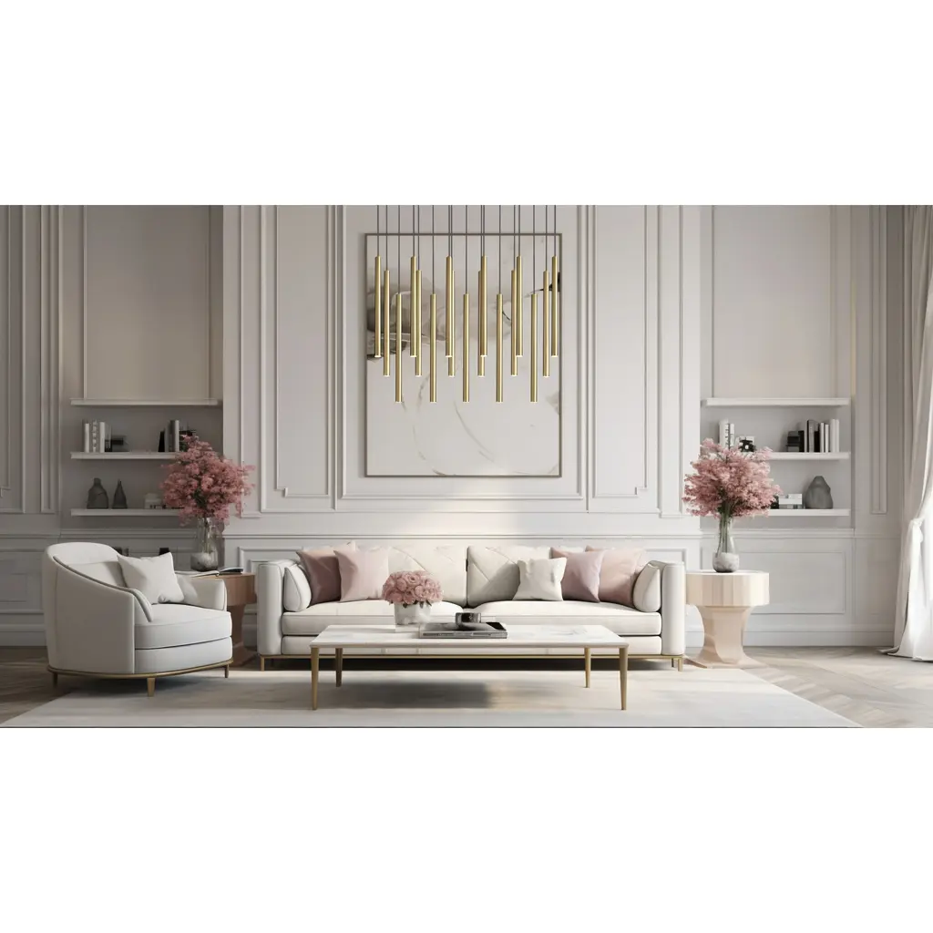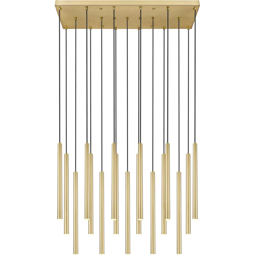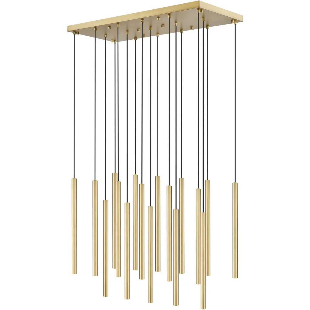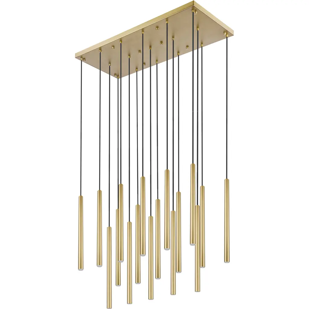 Enjoy the rich warmth of a modern gold finish on this contemporary 17-light chandelier. It showcases a linear silhouette that's a perfect complement in dining rooms and entryways, creating a chic, polished ambiance with its dimmable lights. The LEDs are energy efficient, offering the perfect complement in an eco-friendly space.