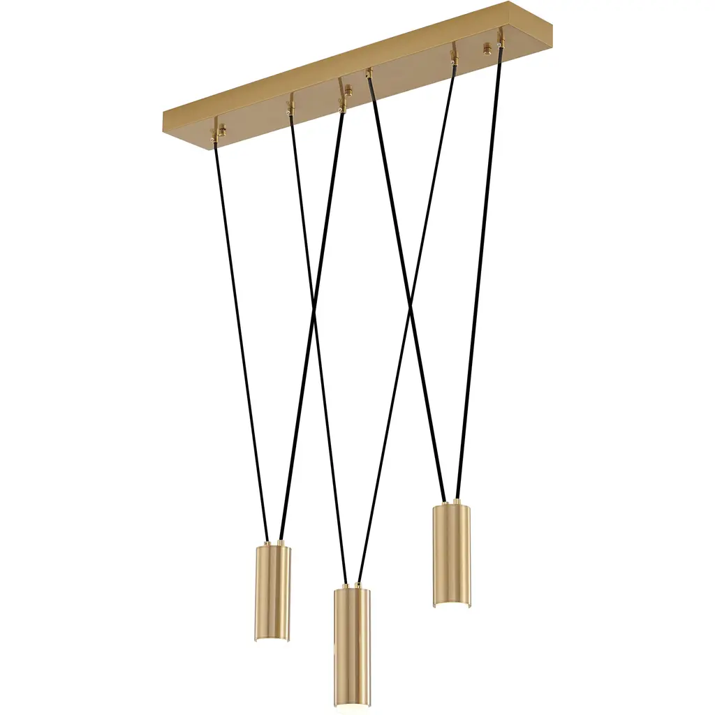 Graceful and energy efficient, this modern five-light linear chandelier features integrated LED lights for excellent illumination. The lights are dimmable for a lovely ambiance, and are housed in long, slim cylinder shades that play up a refined look and feel. A modern gold finish completes the look with sophisticated warmth.