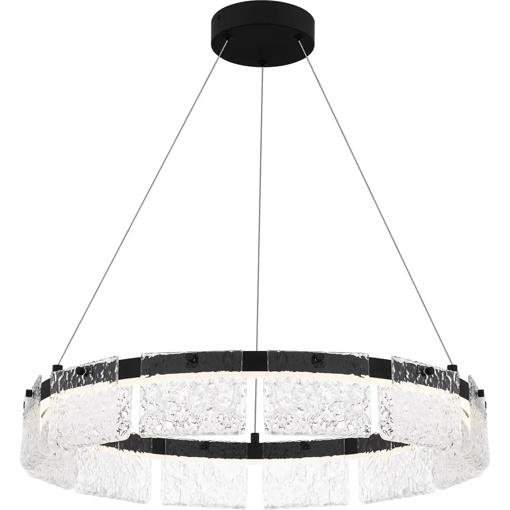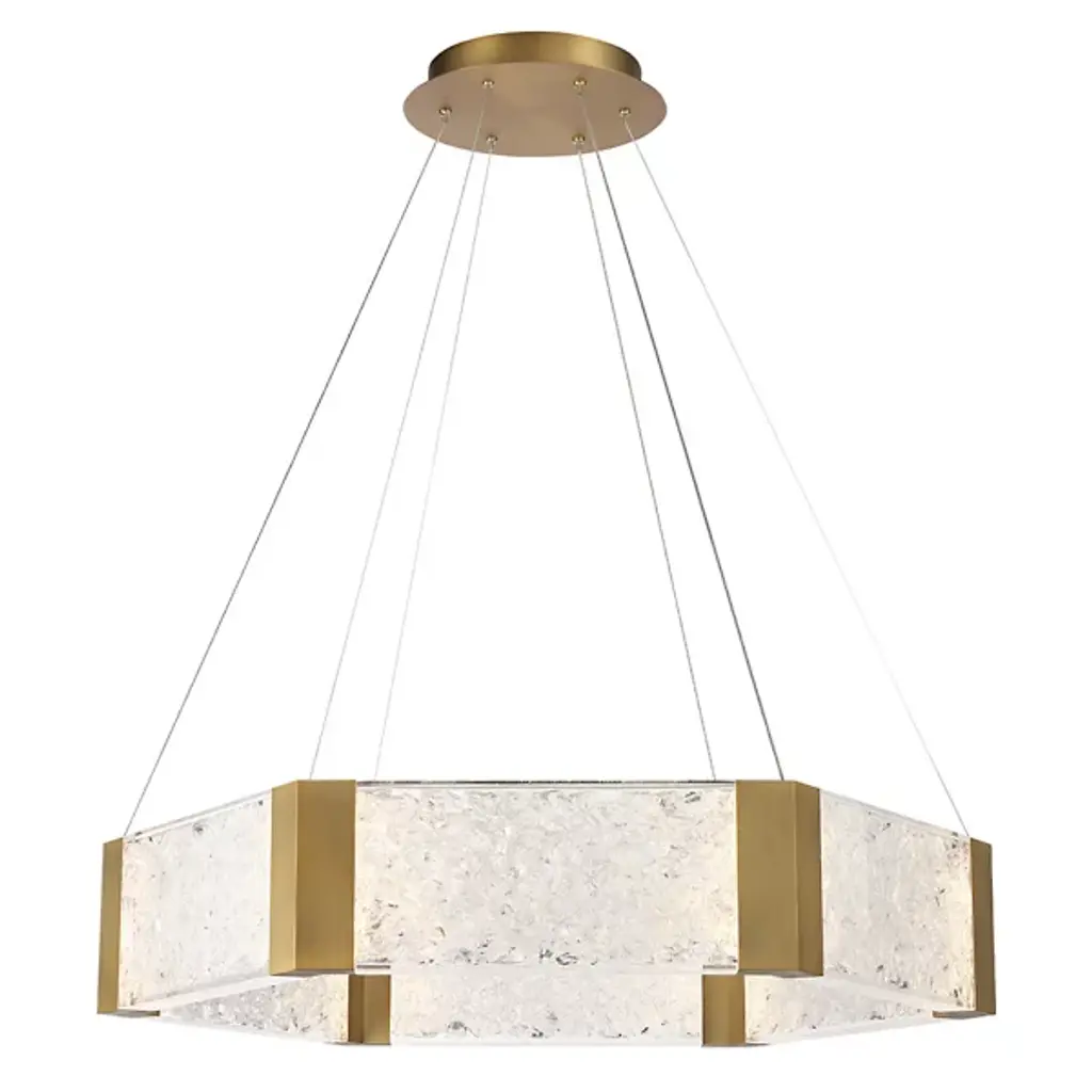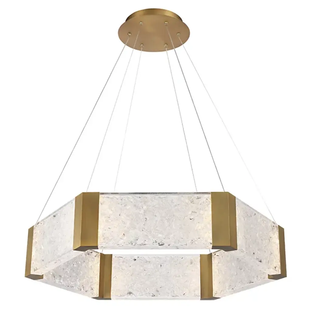 Enliven your living spaces with the Forever LED Chandelier from Modern Forms, a luxurious fixture so fabulous you’ll never want to take it down. A circular metal canopy suspends the piece by sending down several slender cables, while its construction claims center stage. Rectangular panels made from reclaimed K5 crystal are held between angular aluminum brackets over integrated LEDs, easing any direct brightness by transmuting it into an effervescent ambiance from above.