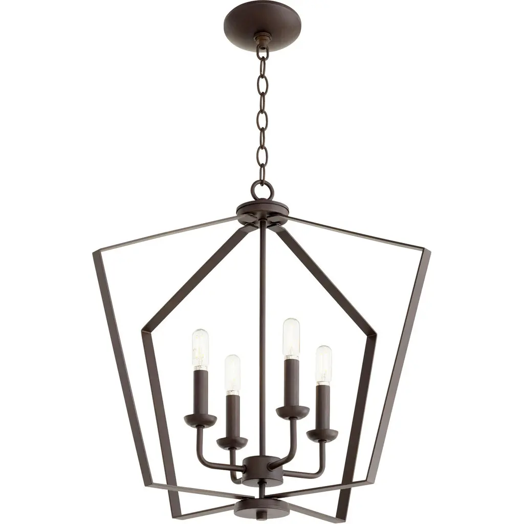 Fort Worth 4 Light 23 Inch Oiled Bronze Mini Chandelier Ceiling Light, Quorum Home