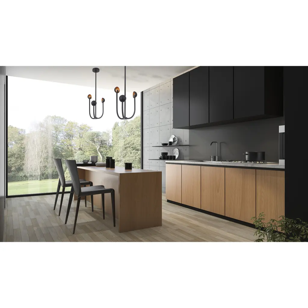 Our Foundry lighting series is an expression of light and shadows. Fun and modern, this series uses metal arms at varying heights to create an abstract sculpture. The LED light source is partially eclipsed in the center of a gold leaf sphere to give the Foundry an experimental quality that is imaginative and visually stunning.