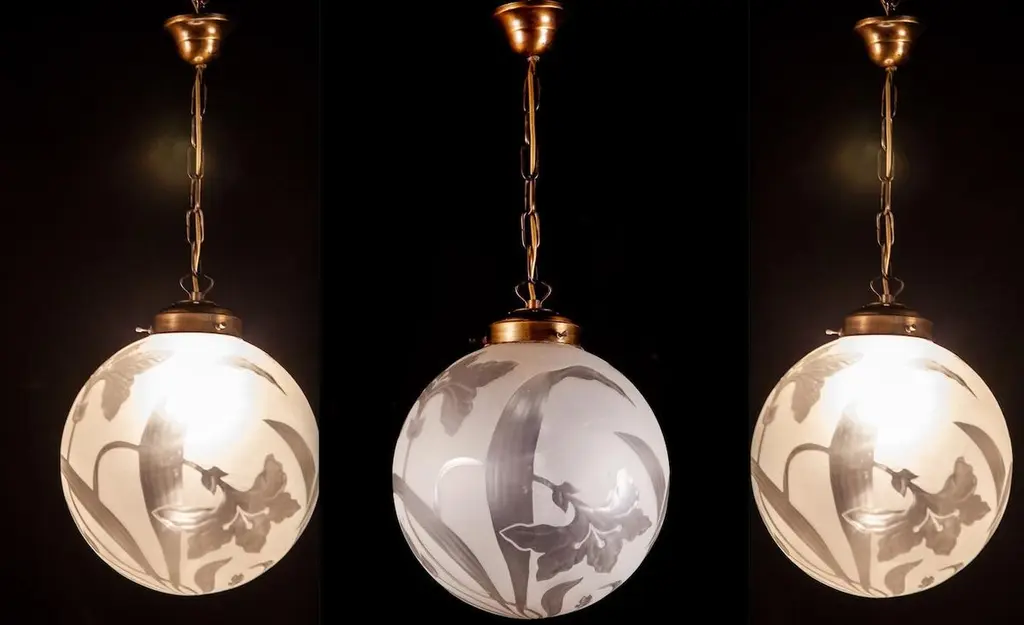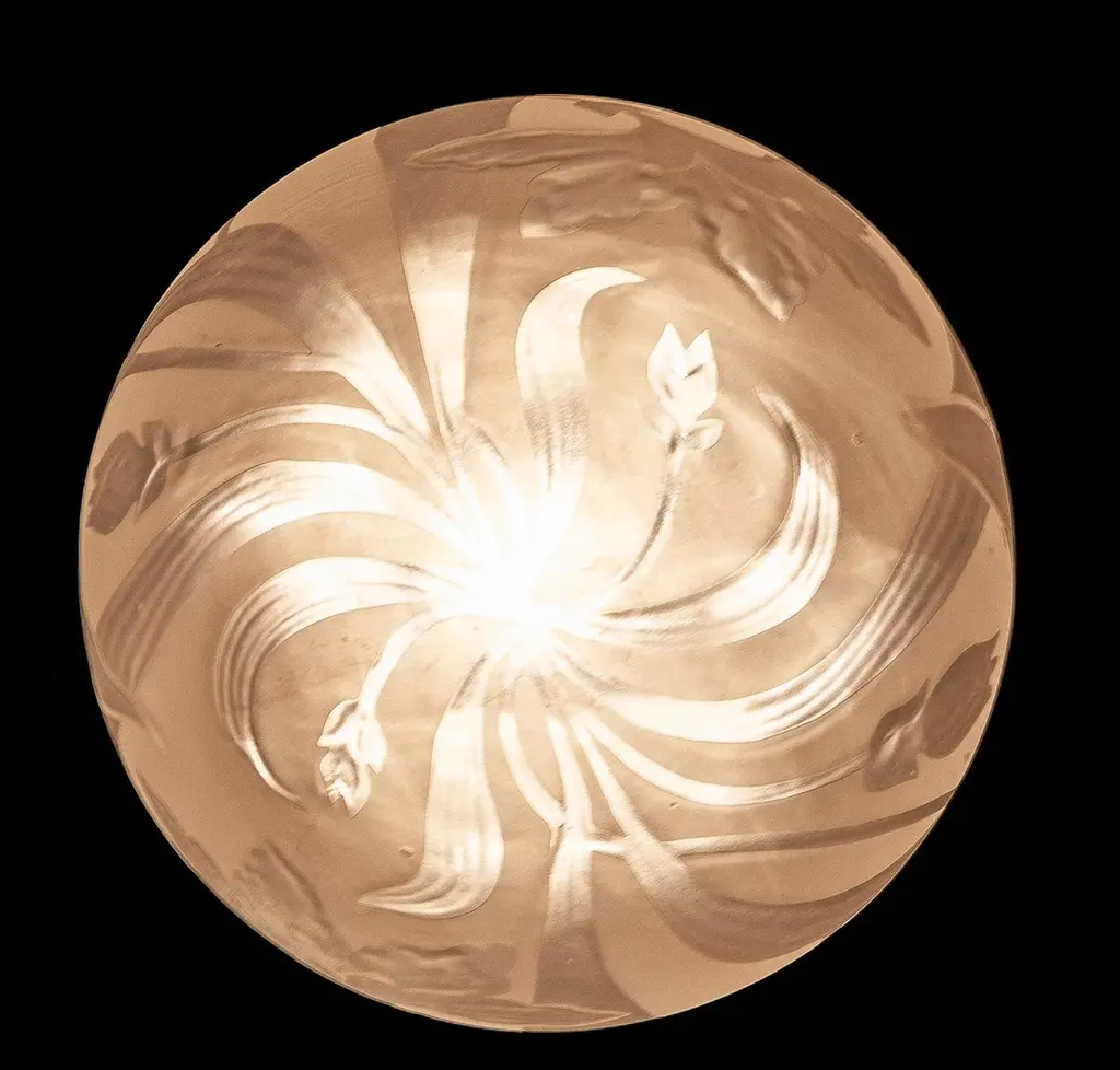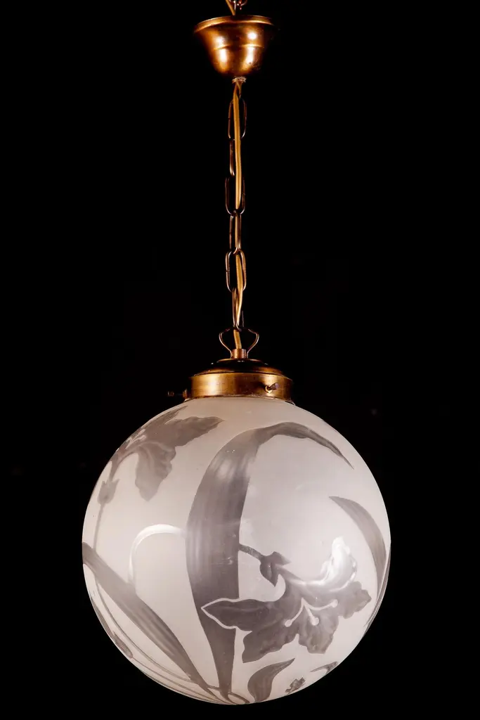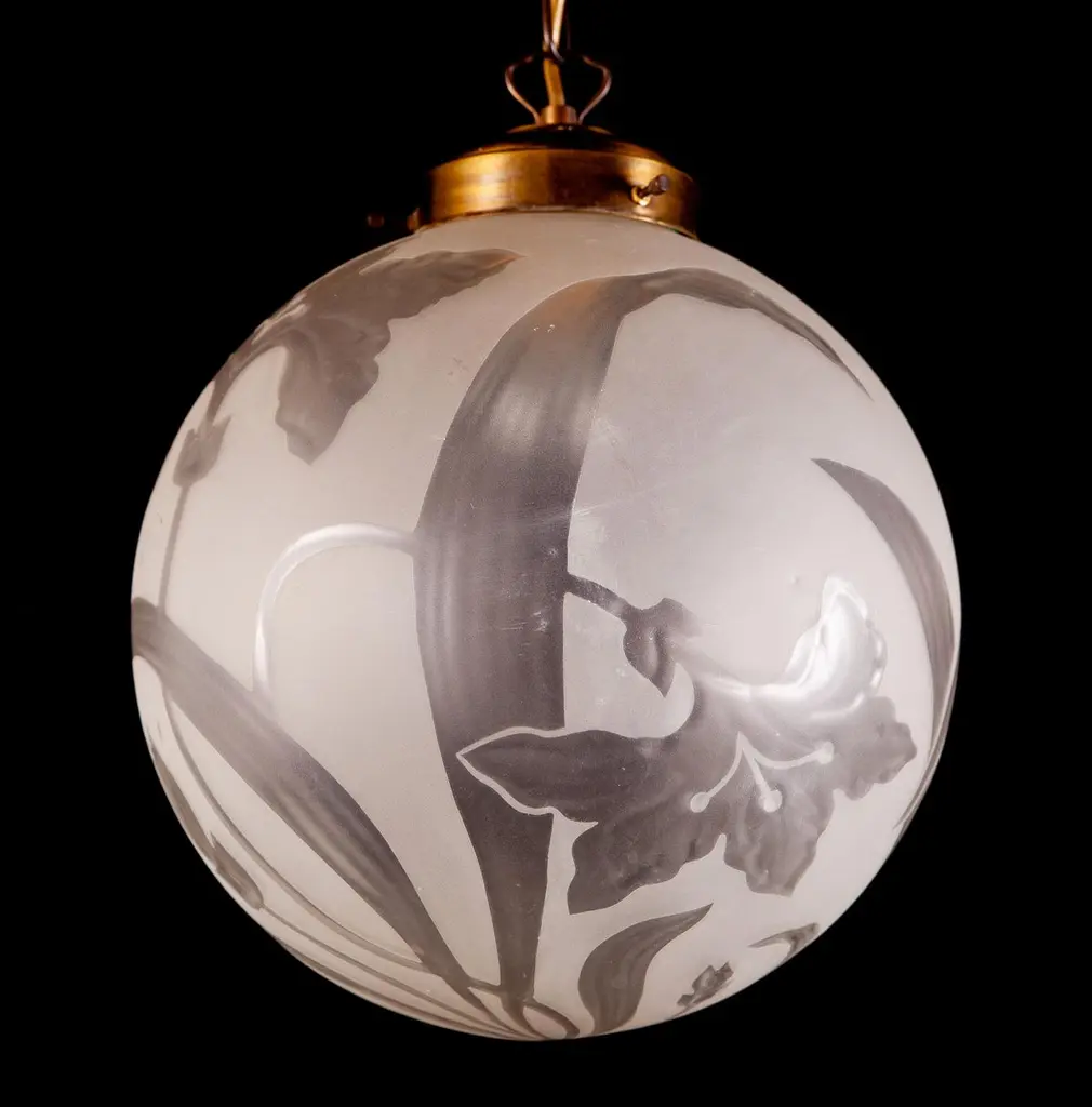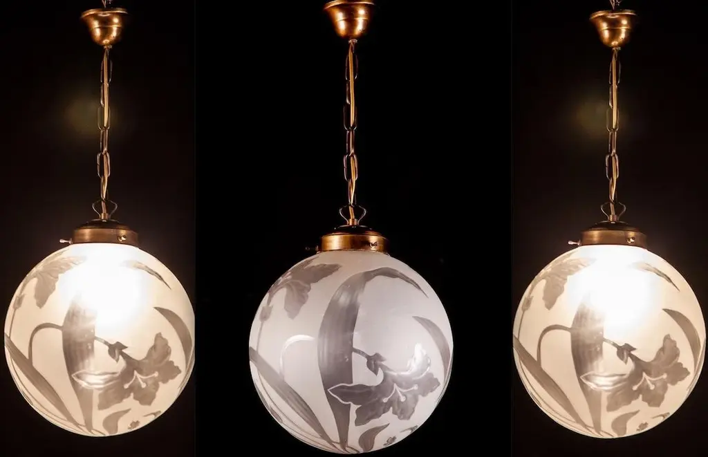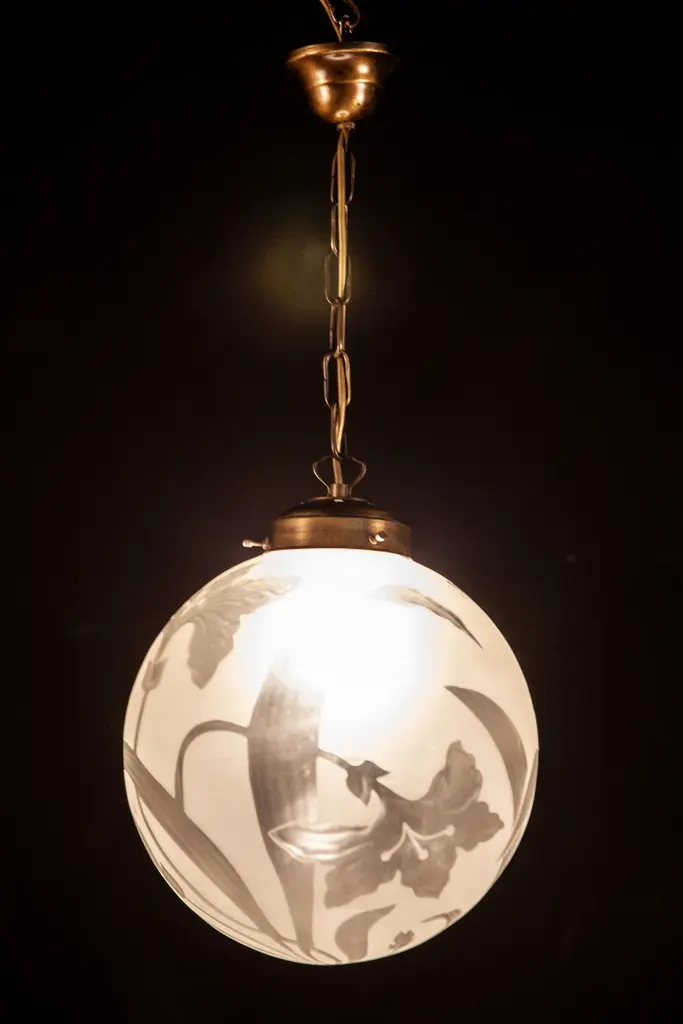 Finely hand blown engraved glass with stylized flowers an leaves in excellent vintage condition.One E 27 light bulb 5 Watt.