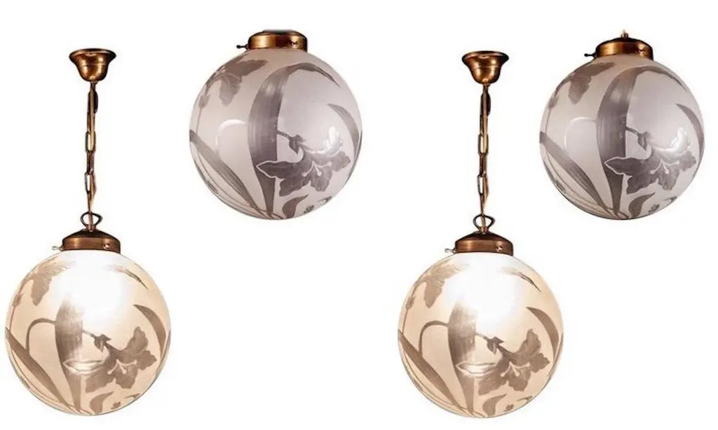 Four Liberty Engraved Glass Sphere Chandeliers Or Lanterns, Italy, 1940