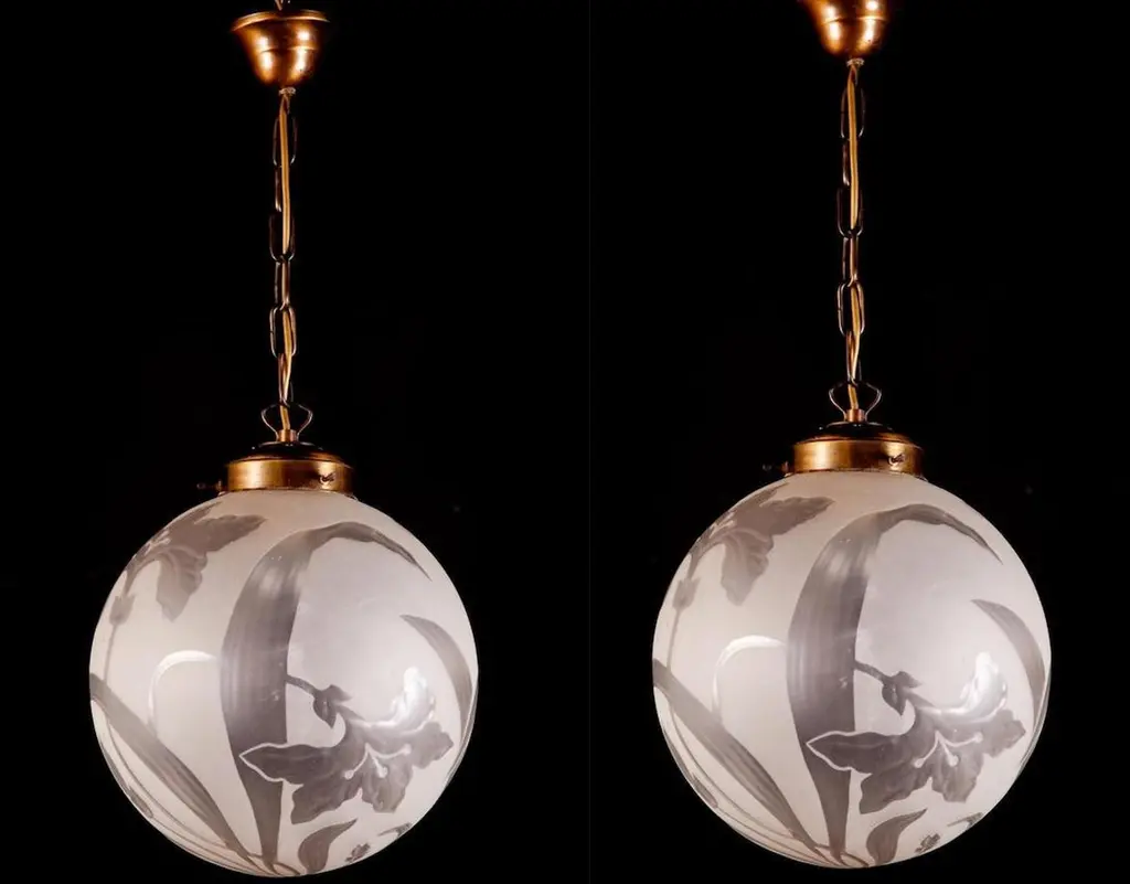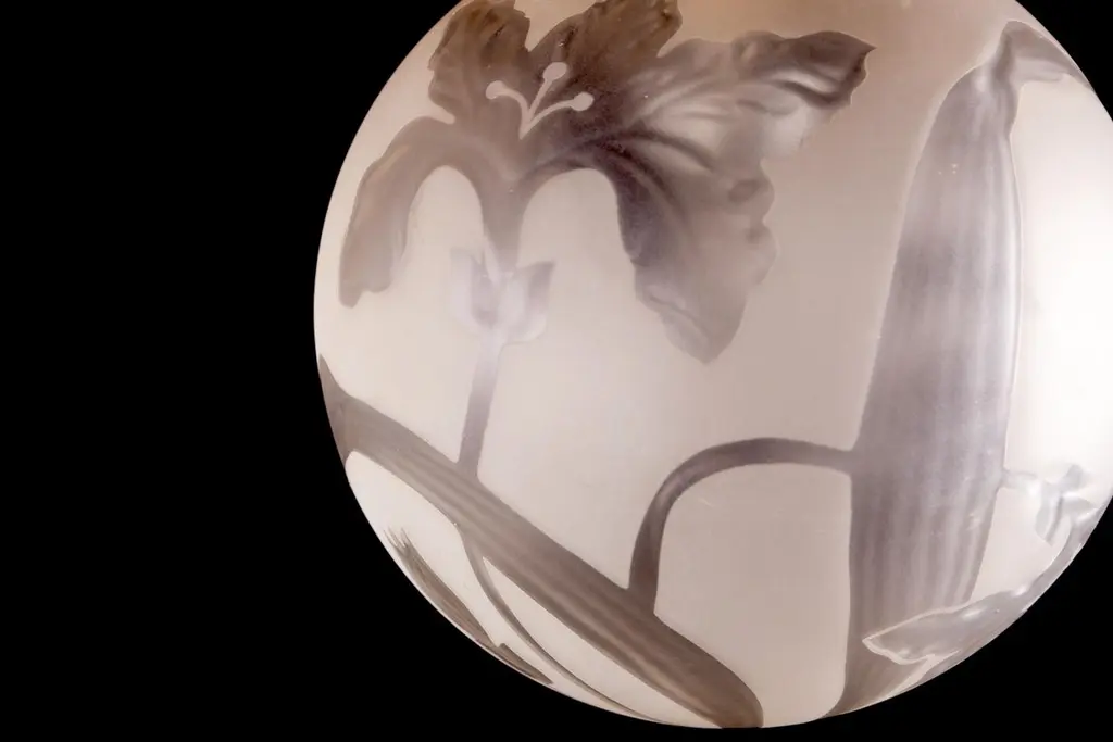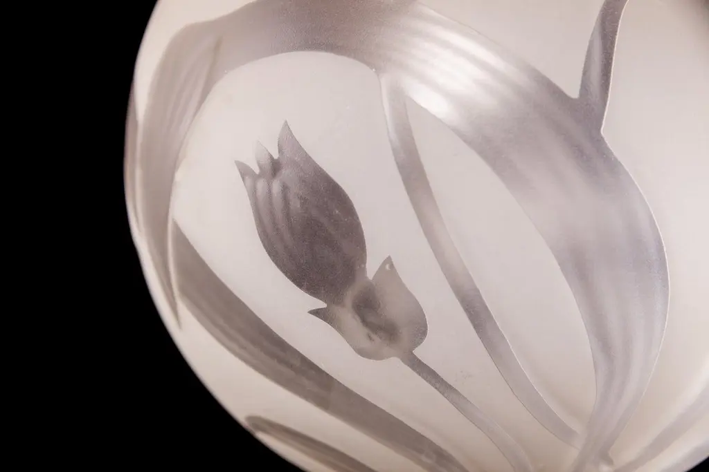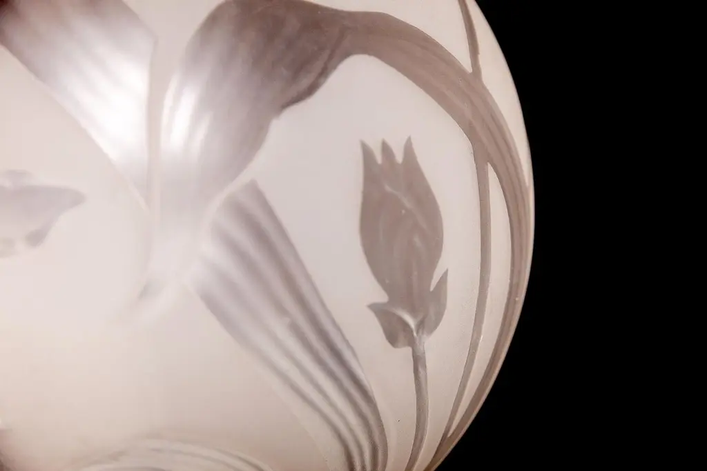 Finely hand blown engraved glass with stylized flowers an leaves in excellent vintage condition.One E 27 light bulb 5 Watt.