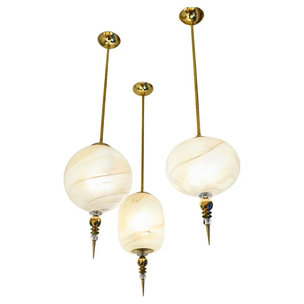 Four Liberty Engraved Glass Sphere Chandeliers Or Lanterns, Italy, 1940