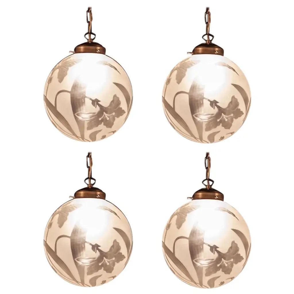 Four Liberty Engraved Glass Sphere Chandeliers Or Lanterns, Italy, 1940