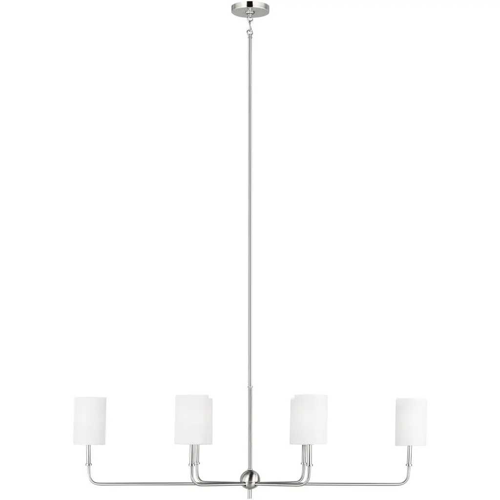 The Foxdale six light linear chandelier in Midnight Black encompasses the new traditional style with flawless execution. Refined and clean-lined, this classic silhouette is timeless without being stuffy. Perfectly transitional, this collection can be placed in any home regardless of style. Topped with White Linen Shades to complete the design.