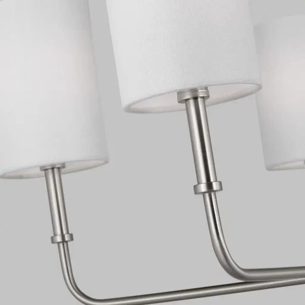 Presented by Visual Comfort Studio, formerly known as Sea Gull Lighting,, the Foxdale Chandelier encompasses the new traditional style with flawless execution. Refined and clean-lined, this classic silhouette is timeless without being stuffy. Perfectly transitional, the Foxdale can be placed in an array of versatile spaces. Topped with linen shades to complete the design