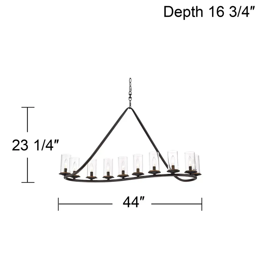 Franklin Iron Works Heritage Bronze Linear Island Pendant Chandelier 44" Wide Farmhouse Rustic Clear Glass 10-light Fixture For Dining Room Kitchen