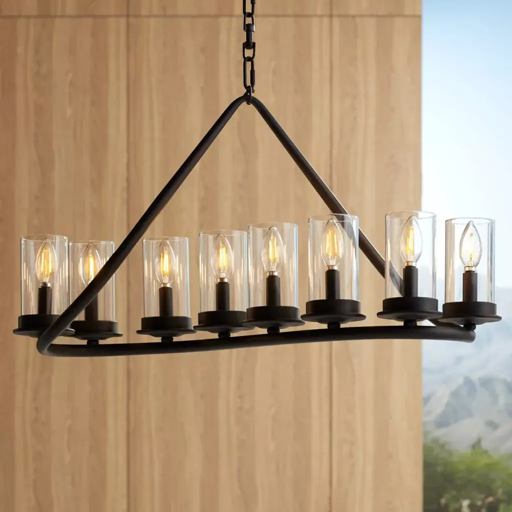 Franklin Iron Works Heritage Bronze Linear Pendant Chandelier 29 3/4" Wide Farmhouse Rustic Glass Shade 8-light Fixture For Dining Room Kitchen Island