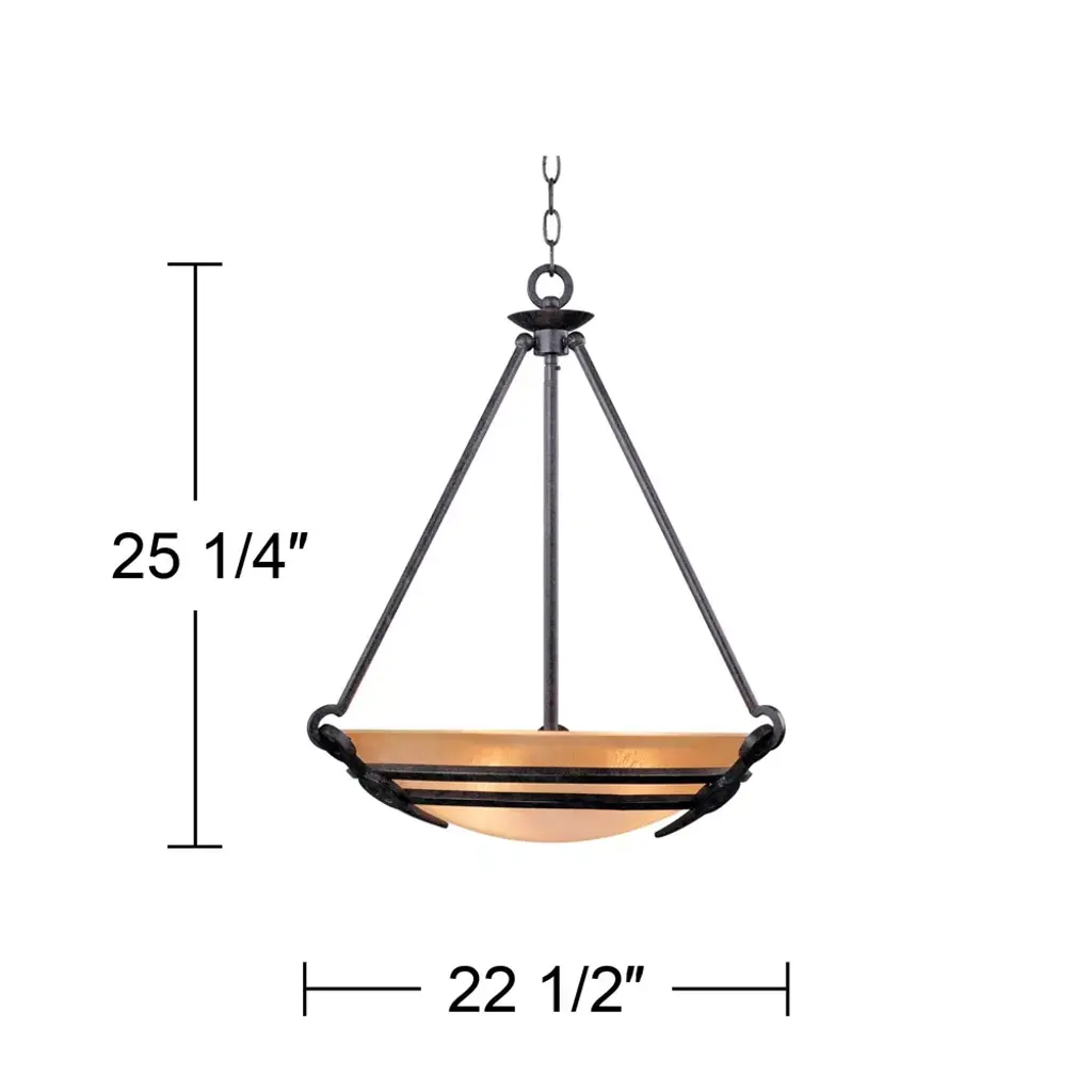Franklin Iron Works Old Bronze Bowl Pendant Chandelier 22 1/2" Wide Mission India Scavo Glass For Dining Room House Foyer Kitchen