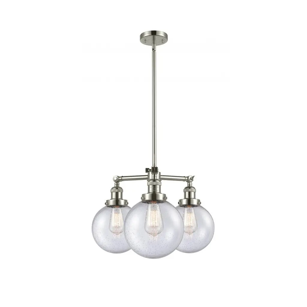 The Large Beacon 3 Light Chandelier is part of the Franklin Restoration Collection. Includes 1-6 and 2-12 inch Stems With Solid Brass 90 Degree Hang Straight Swivel for Sloped Ceilings. Solid Brass 90 Degree Hang Straight Swivel for Sloped Ceilings Included