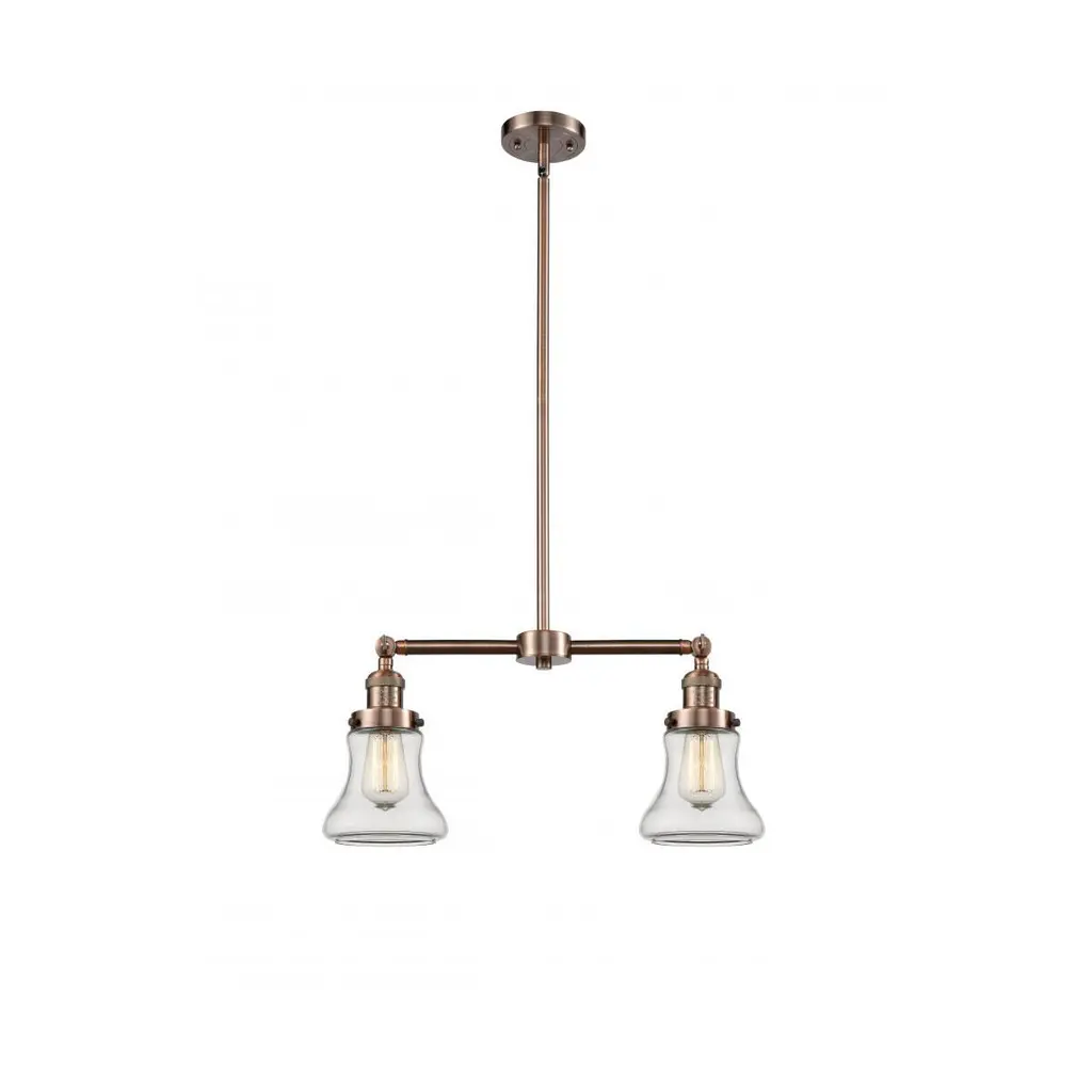 The Large Bell 2 Light Chandelier is part of the Franklin Restoration Collection. Includes 1-6 and 2-12 inch Stems. Additional Stems sold separately.. Solid Brass 180 Degree Adjustable Swivels with internal teeth that lock in at 5 degree intervals With Engraved Cast Cup. Solid Brass 90 Degree Hang Straight Swivel for Sloped Ceilings Included