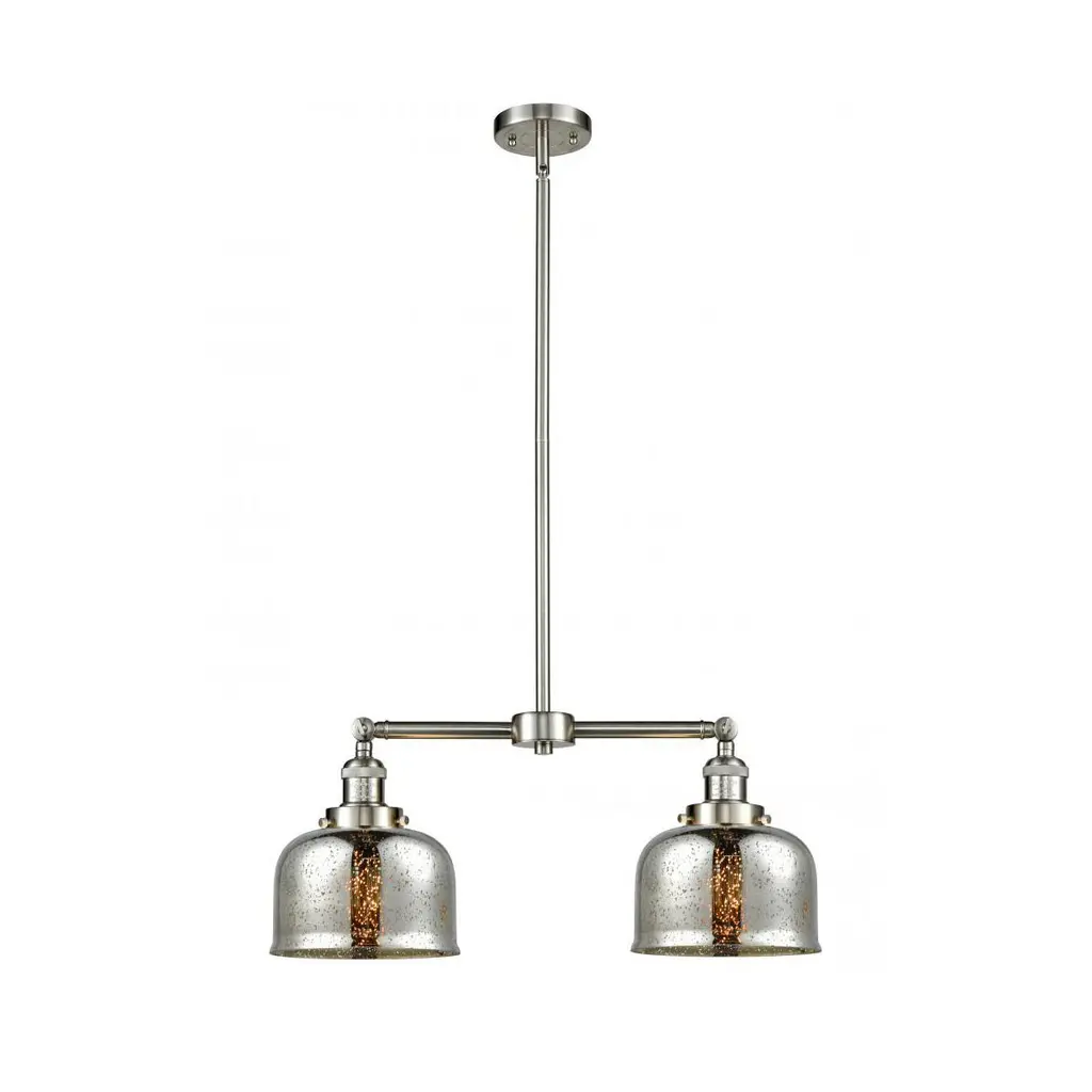 The Large Bell 2 Light Chandelier is part of the Franklin Restoration Collection. Includes 1-6 and 2-12 inch Stems. Additional Stems sold separately.. Additional Stems sold separately.. Solid Brass 180 Degree Adjustable Swivels with internal teeth that lock in at 5 degree intervals With Engraved Cast Cup. Solid Brass 90 Degree Hang Straight Swivel for Sloped Ceilings Included
