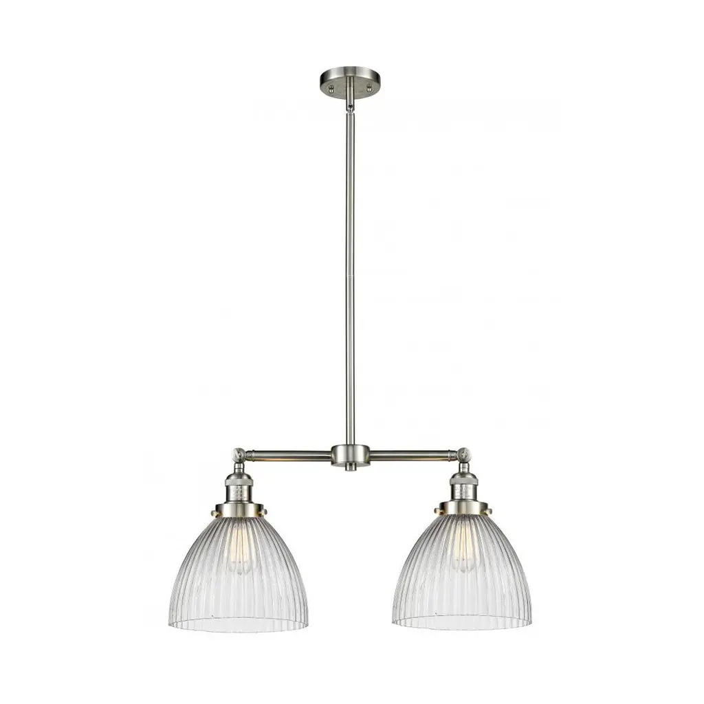 The Seneca Falls 2 Light Chandelier is part of the Franklin Restoration Collection. Includes 1-6 and 2-12 inch Stems. Additional Stems sold separately.. Solid Brass 180 Degree Adjustable Swivels with internal teeth that lock in at 5 degree intervals With Engraved Cast Cup. Solid Brass 90 Degree Hang Straight Swivel for Sloped Ceilings Included