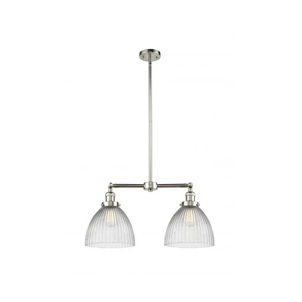 The Seneca Falls 2 Light Chandelier is part of the Franklin Restoration Collection. Includes 1-6 and 2-12 inch Stems. Additional Stems sold separately.. Additional Stems sold separately.. Solid Brass 180 Degree Adjustable Swivels with internal teeth that lock in at 5 degree intervals With Engraved Cast Cup. Solid Brass 90 Degree Hang Straight Swivel for Sloped Ceilings Included