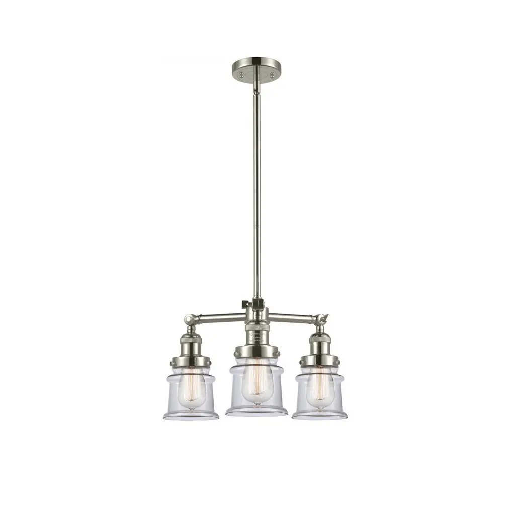The Small Canton 3 Light Chandelier is part of the Franklin Restoration Collection. Includes 1-6 and 2-12 inch Stems With Solid Brass 90 Degree Hang Straight Swivel for Sloped Ceilings. Solid Brass 90 Degree Hang Straight Swivel for Sloped Ceilings Included