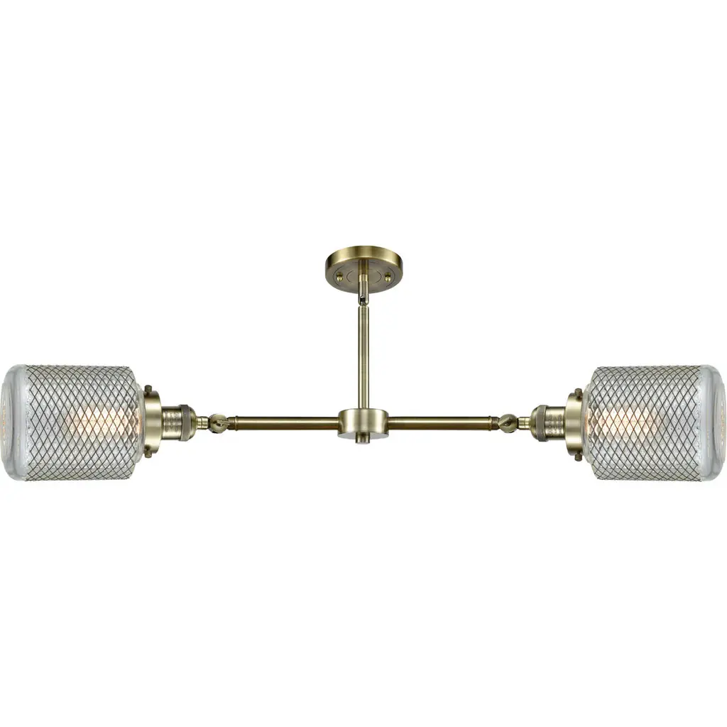 Franklin Restoration Stanton 2 Light 23 Inch Antique Brass Chandelier Ceiling Light In Incandescent, Clear Wire Mesh Glass, Franklin Restoration